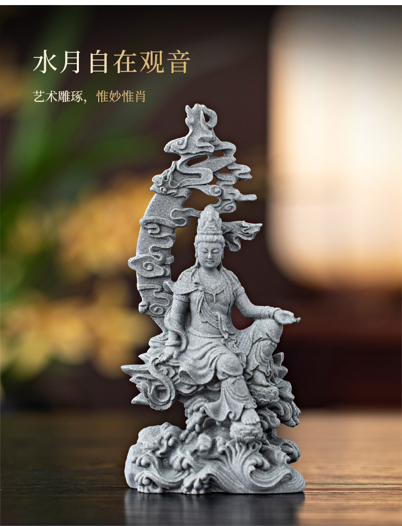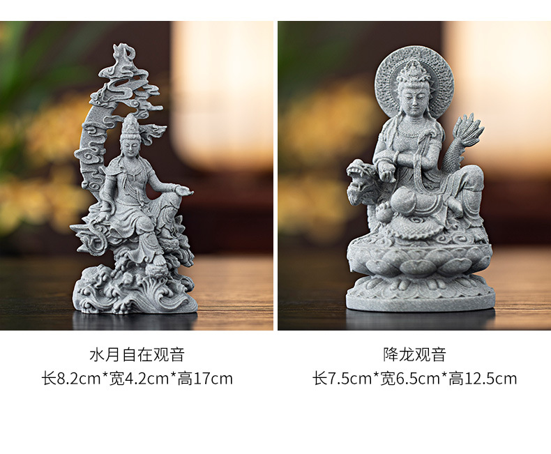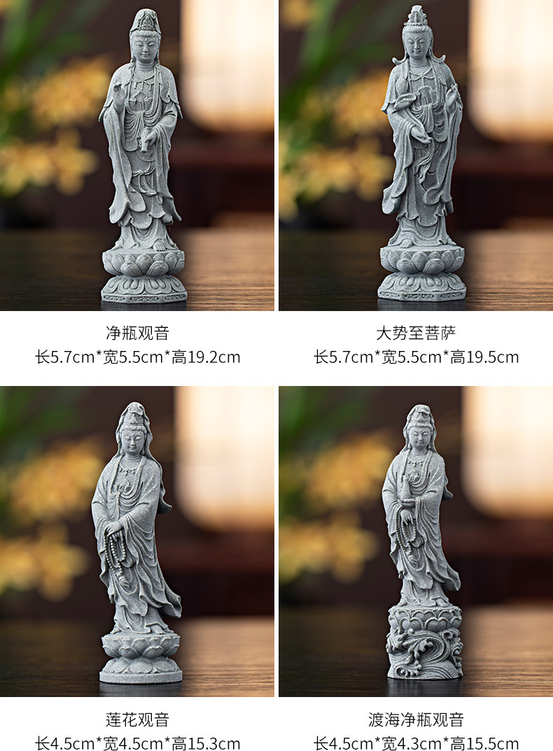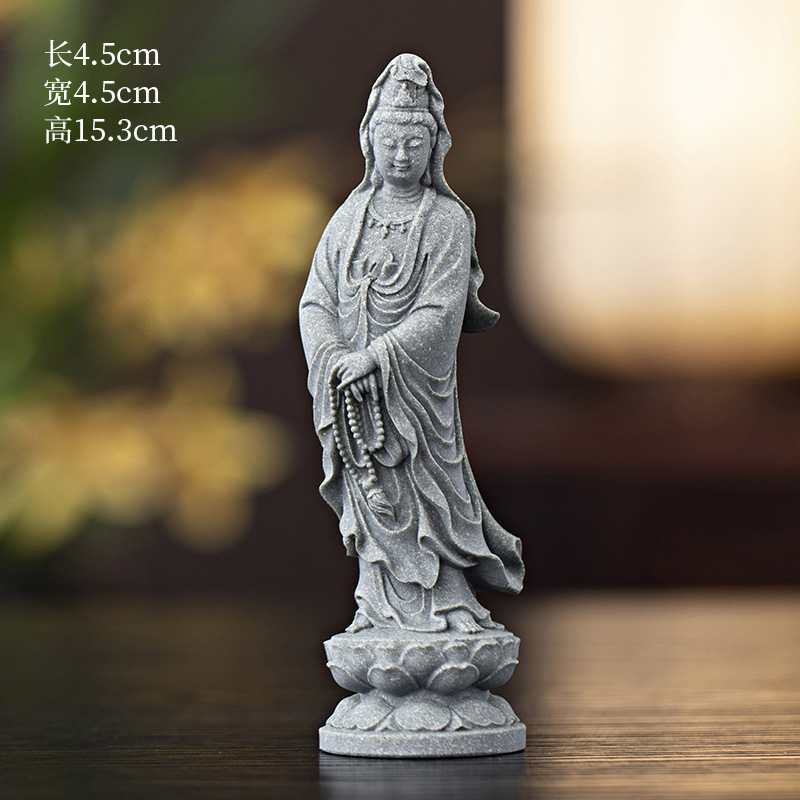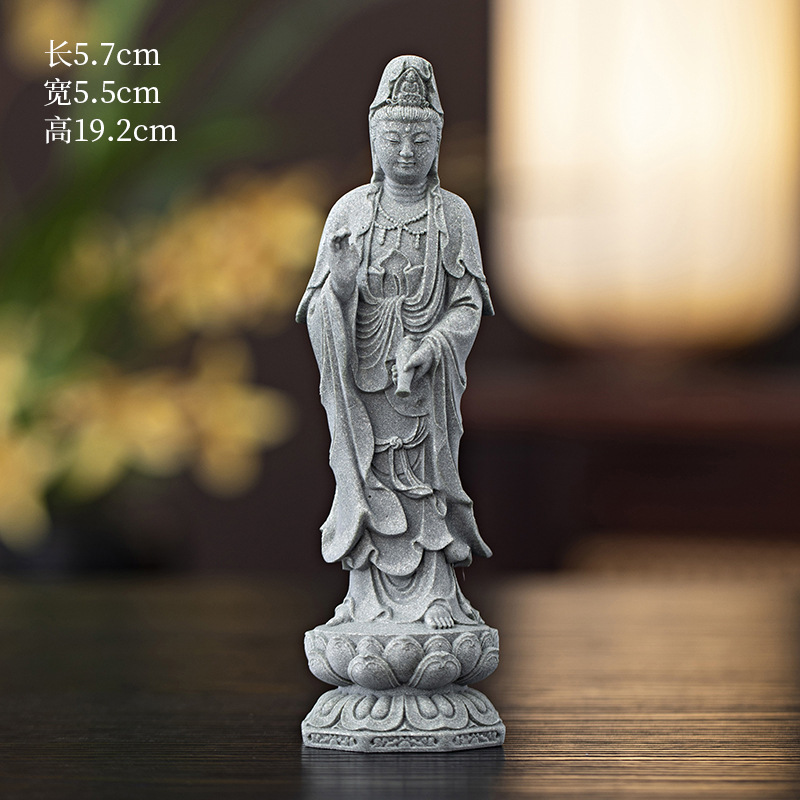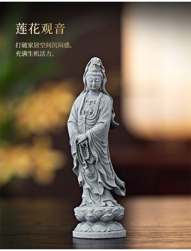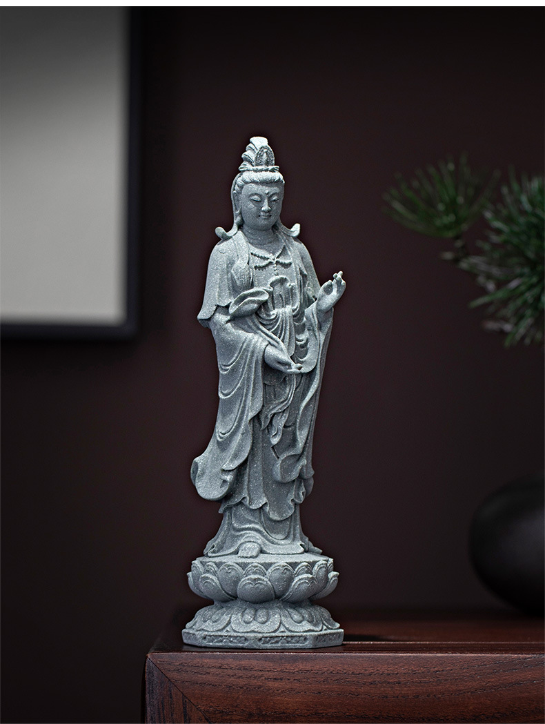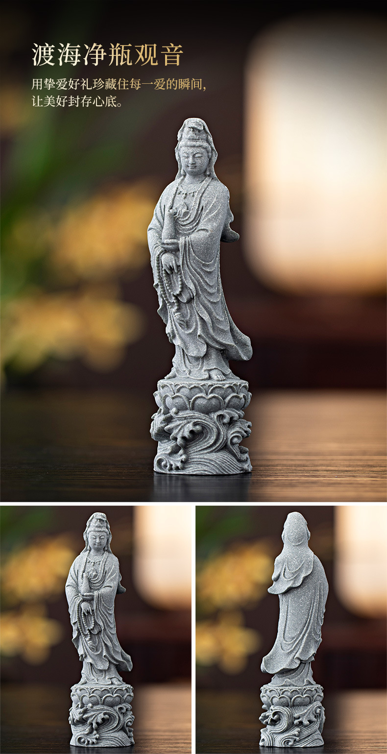 녹색 모래 돌 새로운 중국식 관음보살불상 홈 거실 입구 데스크탑 마스코트 장식 풍경 공예스토어 가기