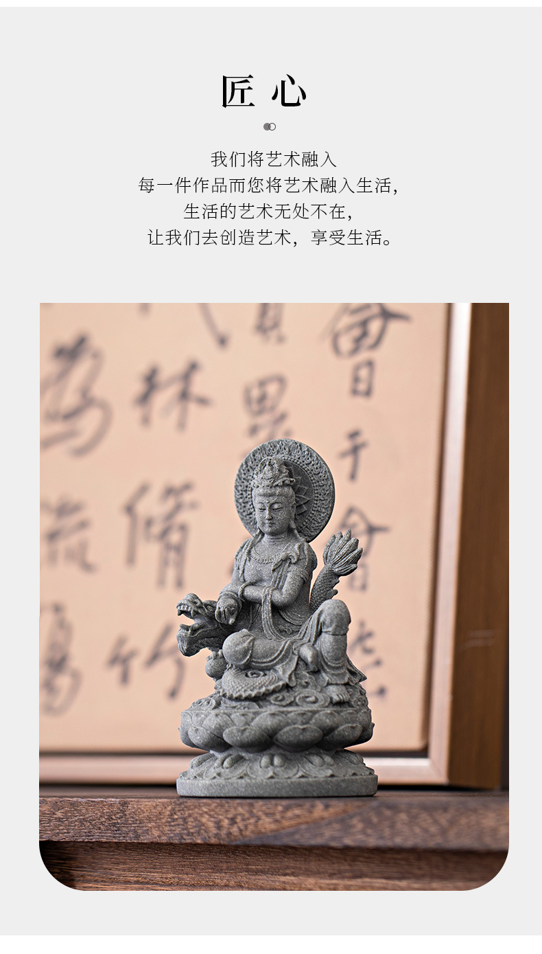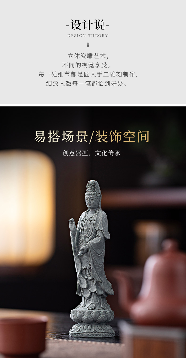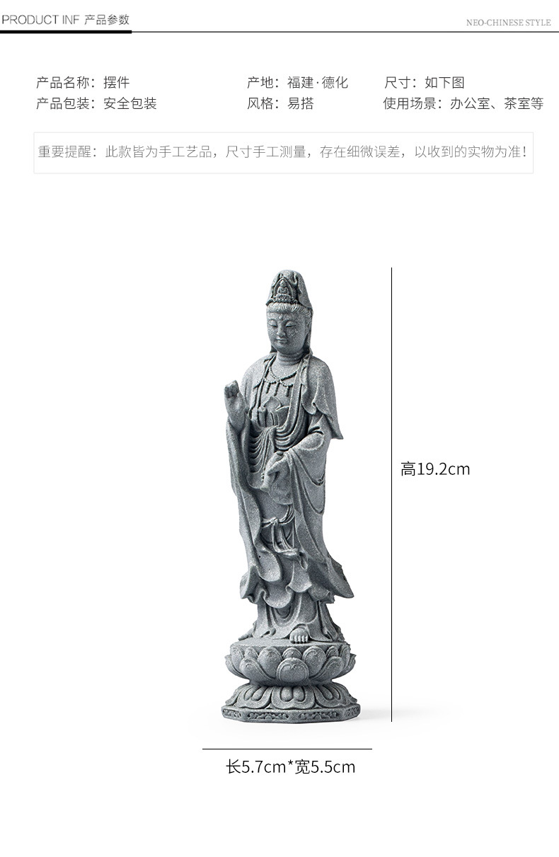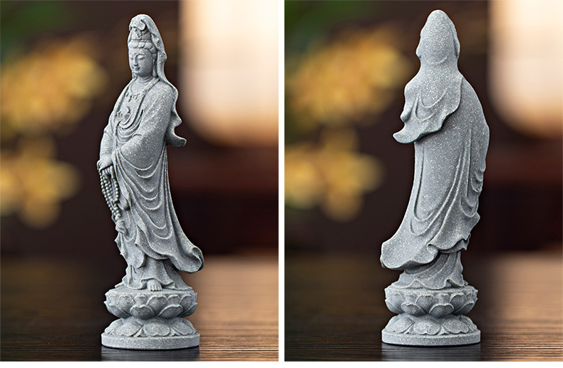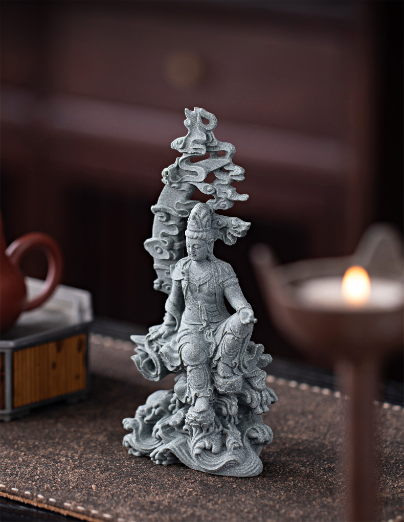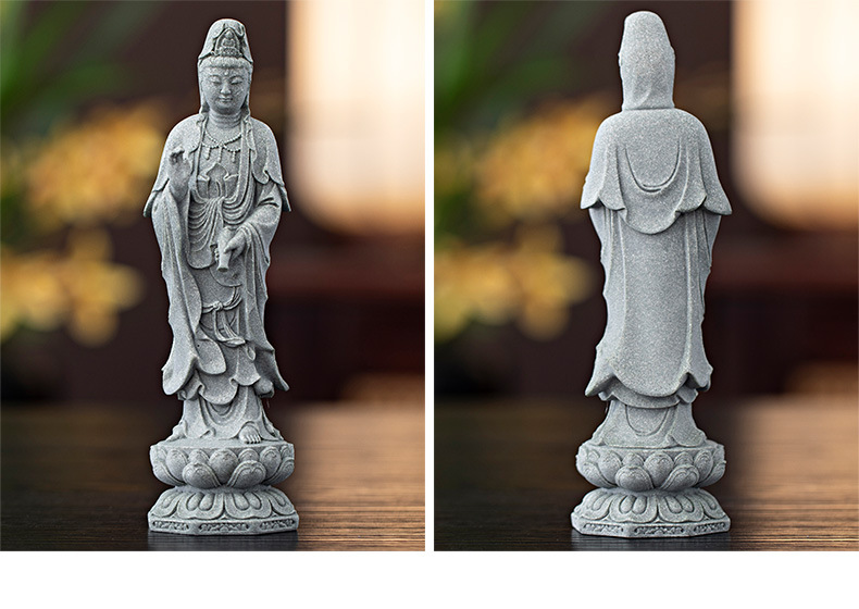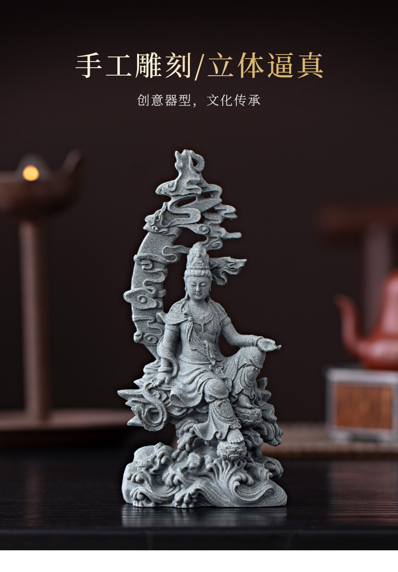 녹색 모래 돌 새로운 중국식 관음보살불상 홈 거실 입구 데스크탑 마스코트 장식 풍경 공예스토어 가기