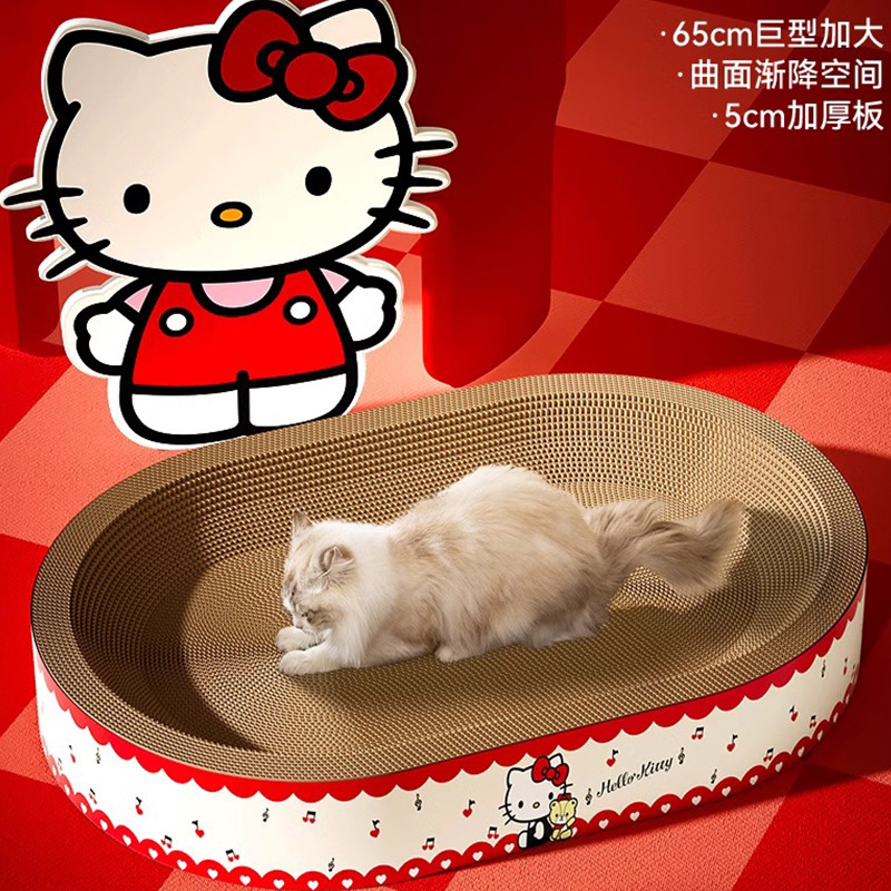 빅맥 타원형 고양이 스크래치 보드, 새끼 고양이 연삭 발톱 대형 내마모성 골판지 전체 인쇄 고양이 발톱 보드 카톤