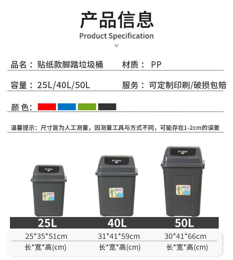 뚜껑 쓰레기가있는 F * 스티커 50 리터 뚜껑이없는 상업용 대형 가정용 화장실 화장실 주방