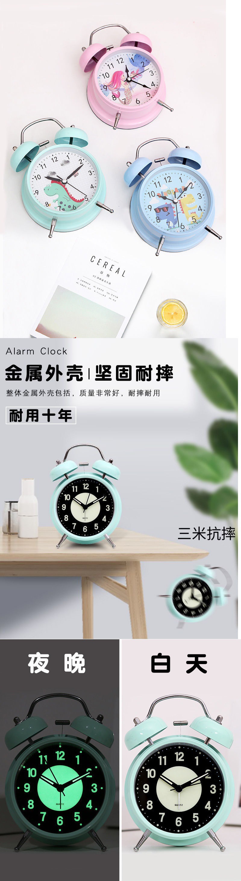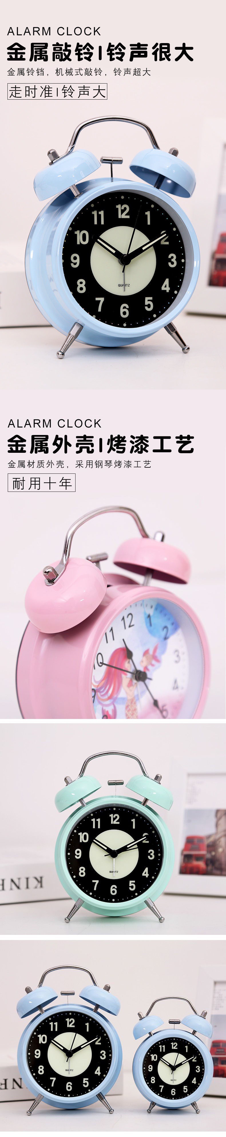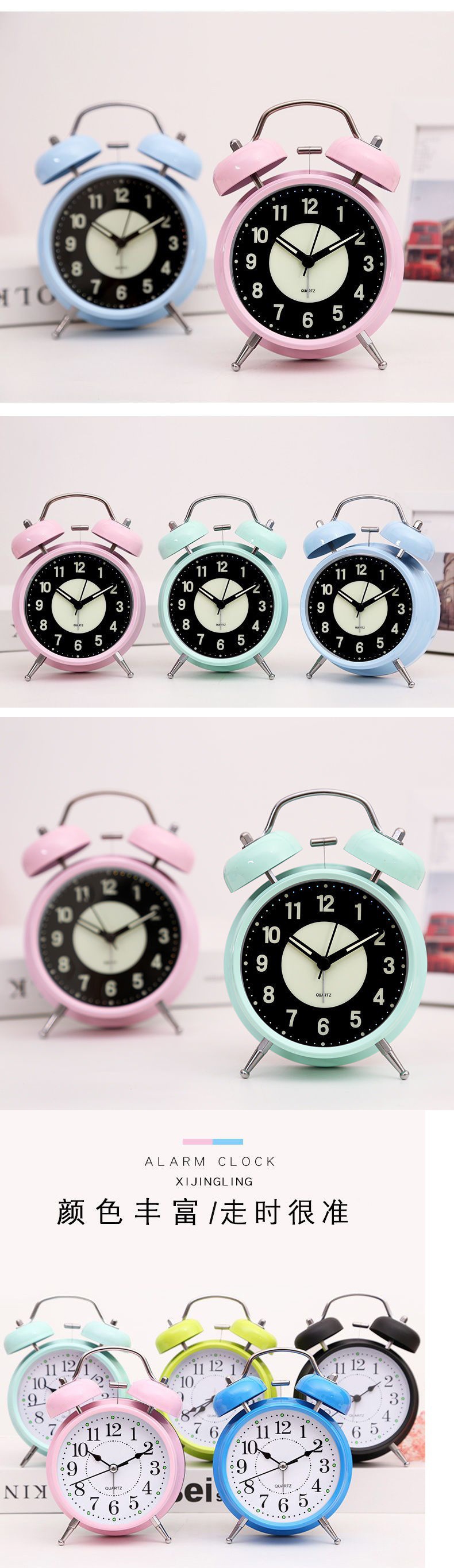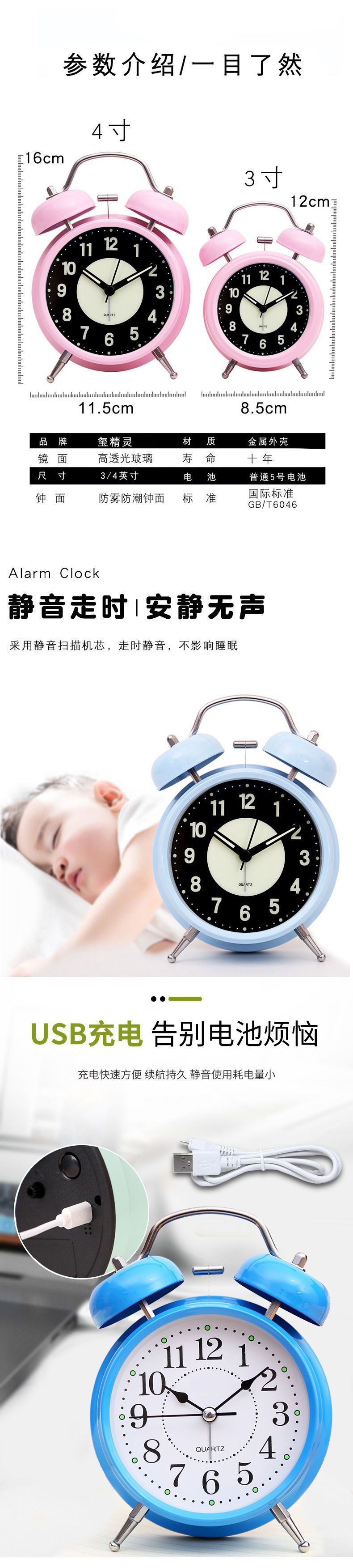 가정용 시계 충전식 발광 소형 알람 시계 학생 침대 머리 어린이 음소거 전자 창조적 인 시계 Jueqin스토어 가기