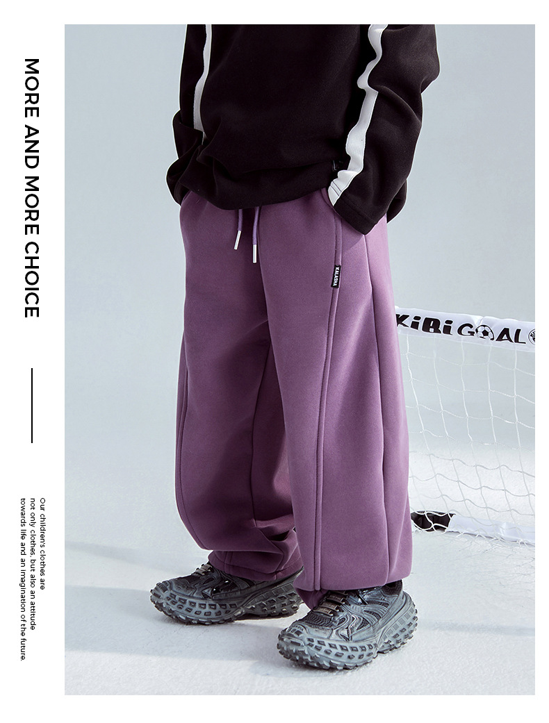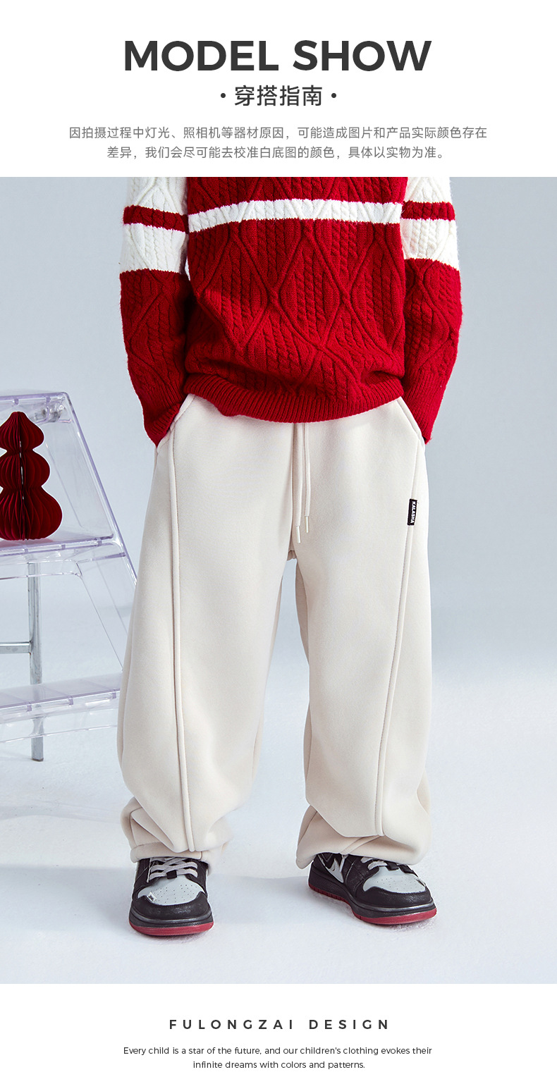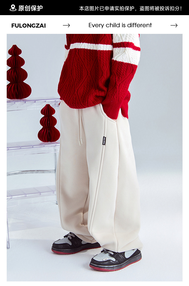 FULONGZAI 플러스 벨벳 두꺼운 가족용 아동복 2024 가을 겨울 남녀 아동 캐주얼 바지 아동용 루즈핏 긴바지스토어 가기