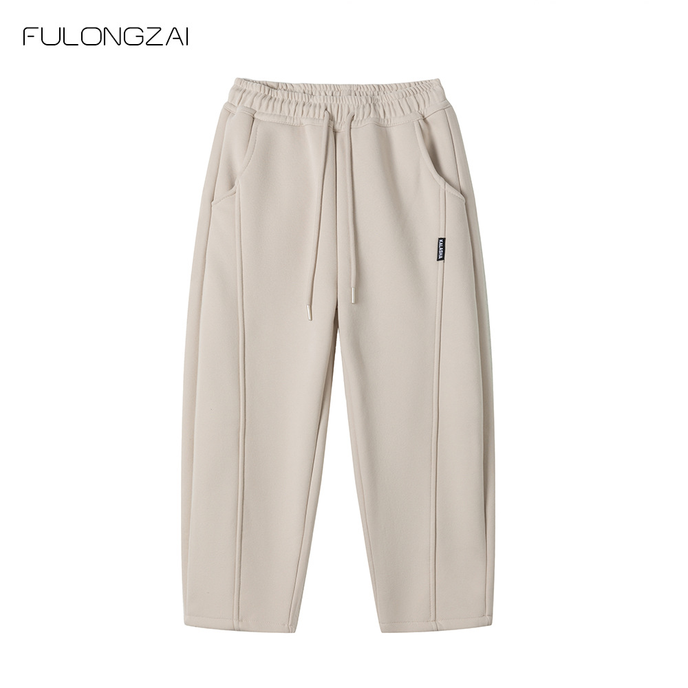 FULONGZAI 플러스 벨벳 두꺼운 가족용 아동복 2024 가을 겨울 남녀 아동 캐주얼 바지 아동용 루즈핏 긴바지
