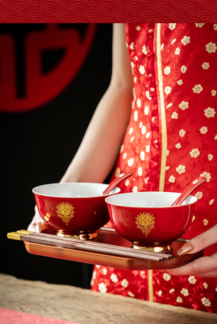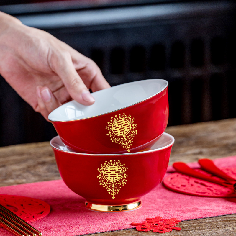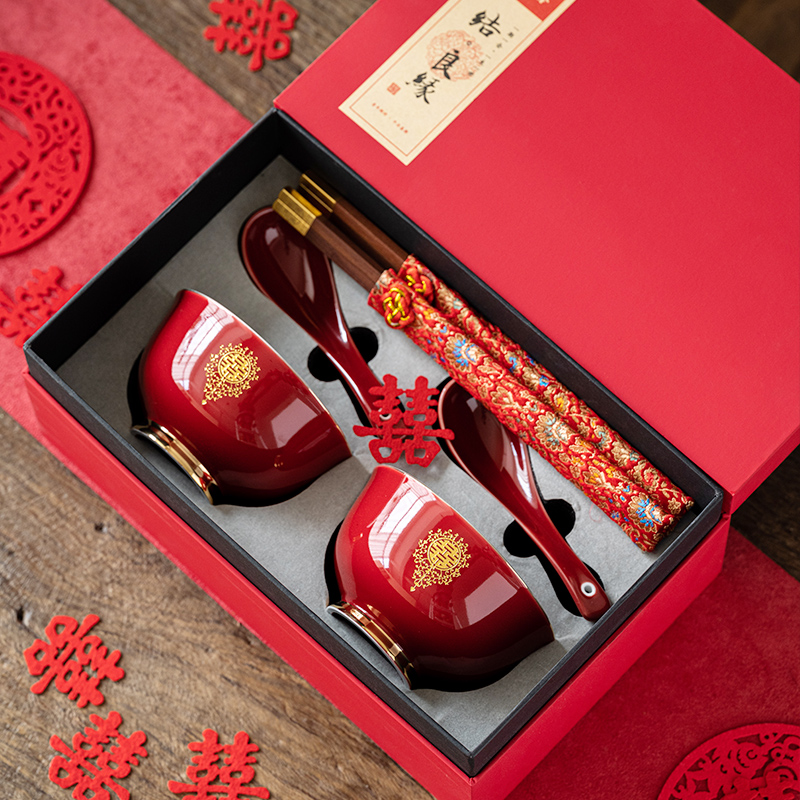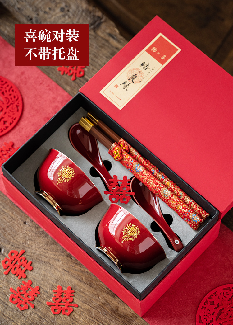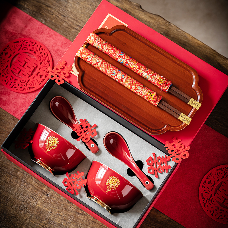웨딩 보울 젓가락 세트 웨딩 보울 페어 보울 웨딩 레드 그릇 선물 새로운 커플을위한 여성 동반 웨딩 용품