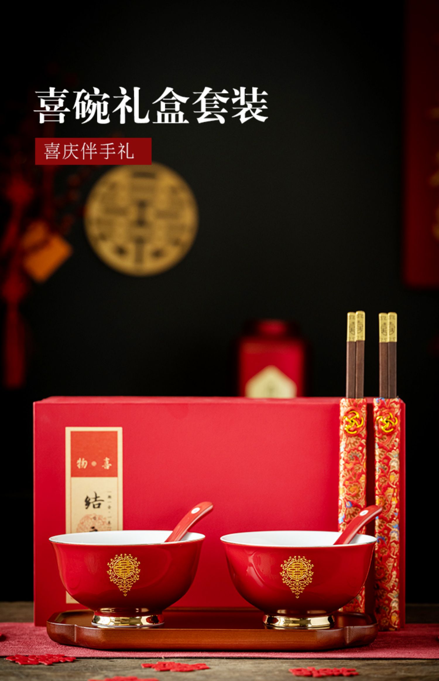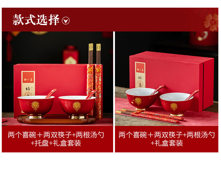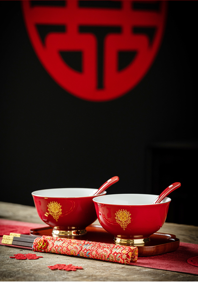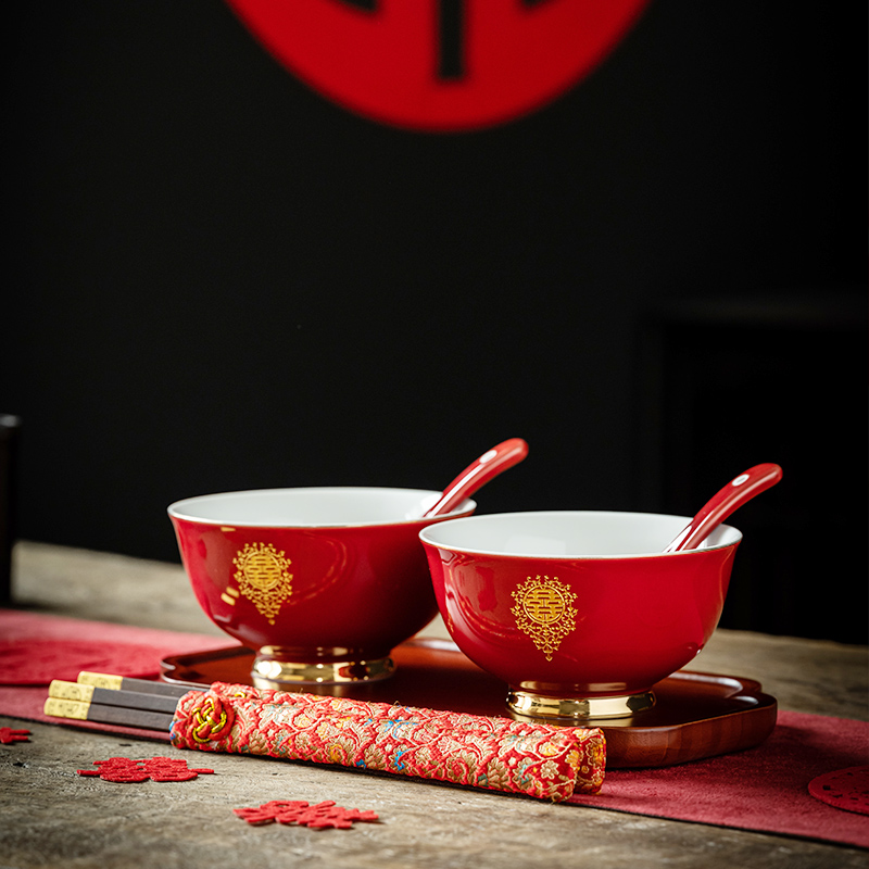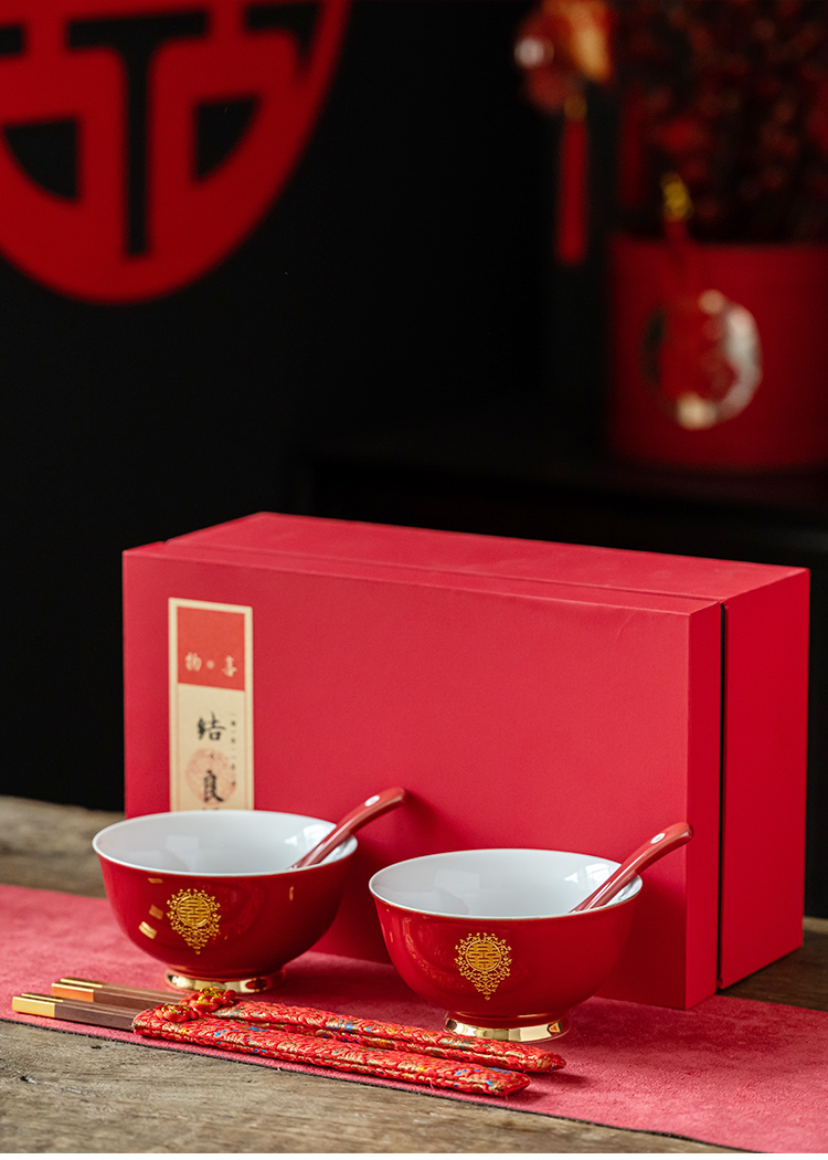 웨딩 보울 젓가락 세트 웨딩 보울 페어 보울 웨딩 레드 그릇 선물 새로운 커플을위한 여성 동반 웨딩 용품