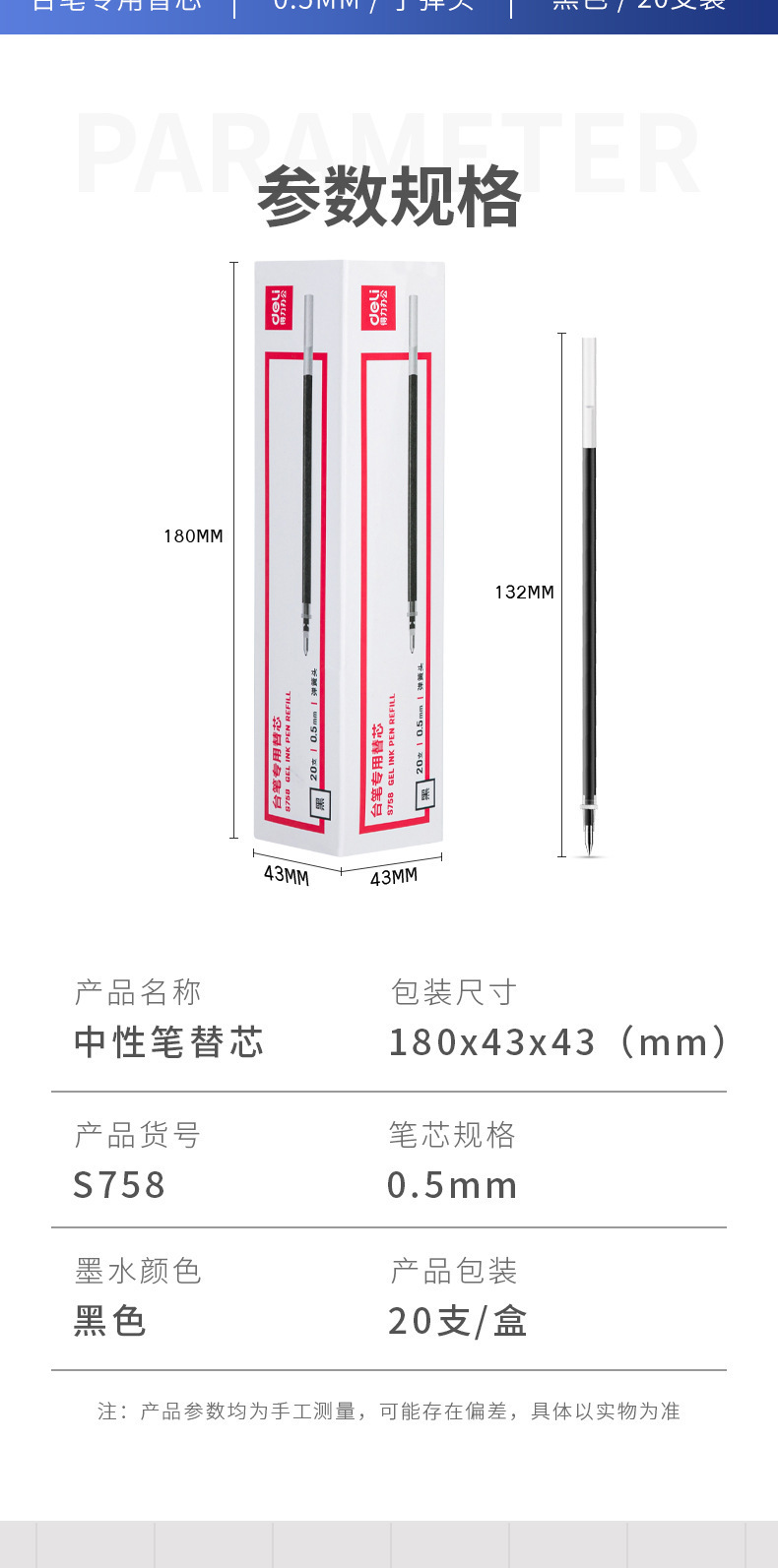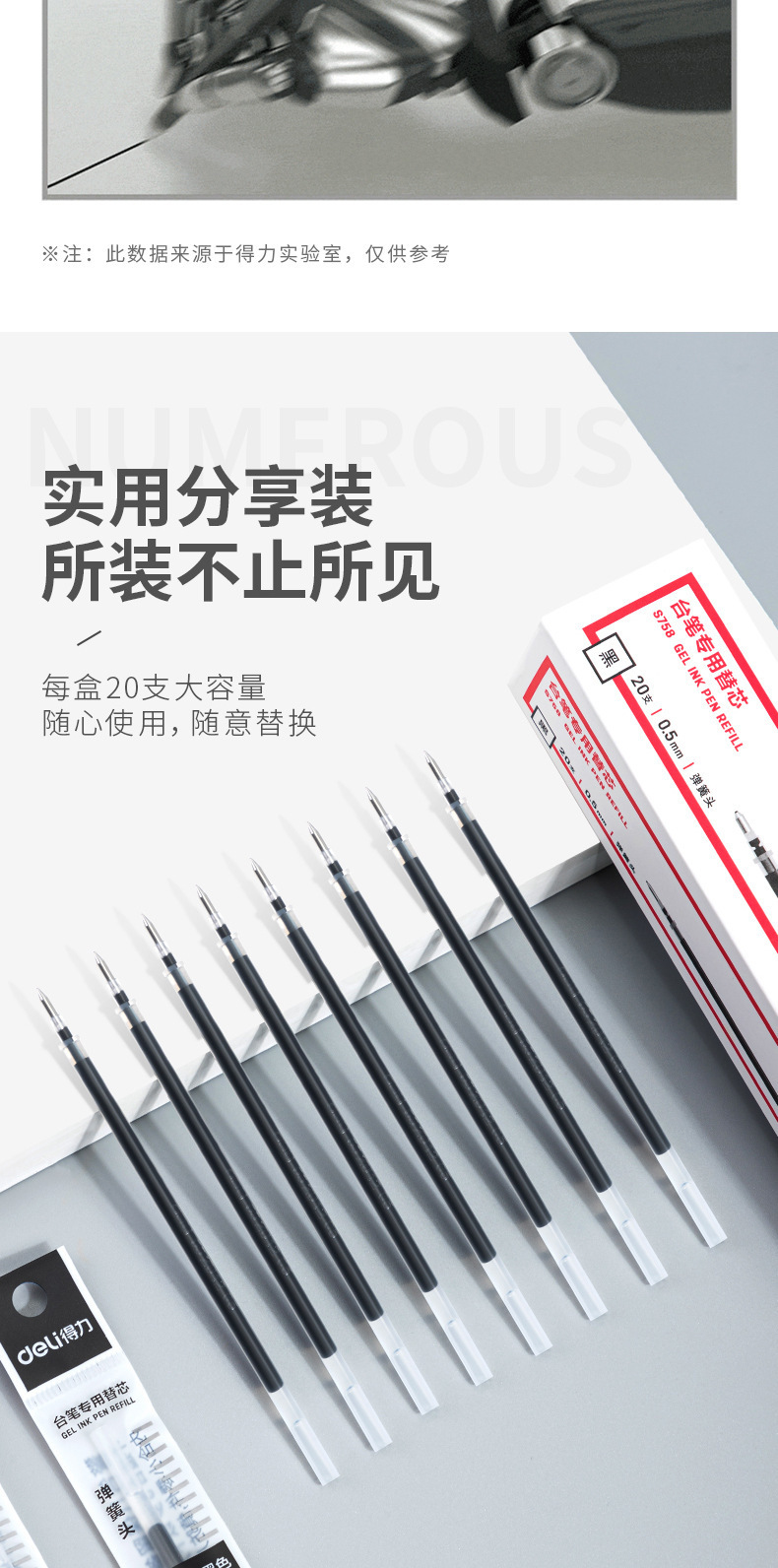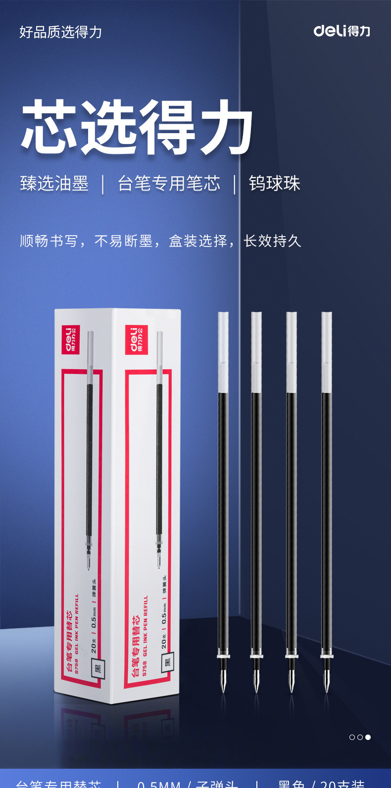 델리 S758 펜 리필 0.5 총알 코어 블랙 쓰기 부드러운 부드러운 잉크 비즈니스 사무실스토어 가기