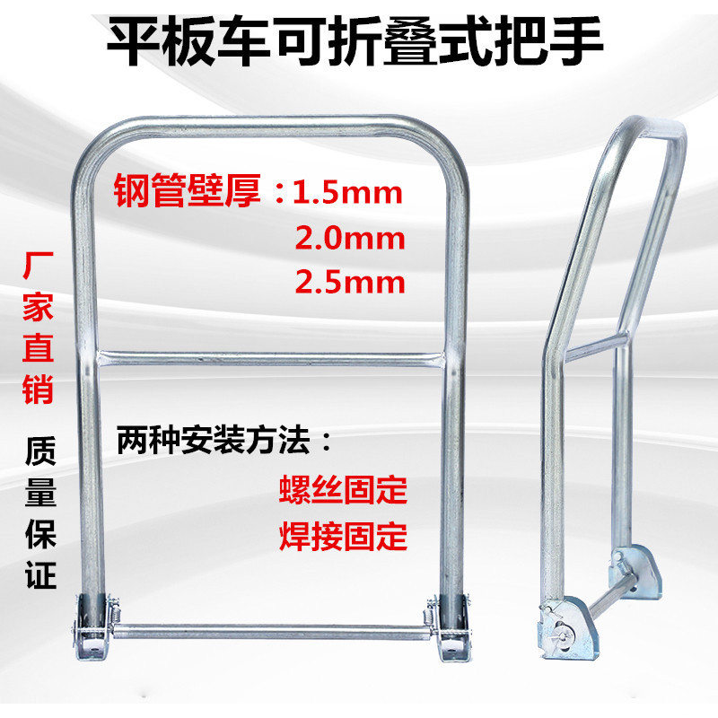플랫 베드 트럭 접이식 핸들 대담한 아연 도금 파이프 두꺼운 손잡이 플라스틱 플랫 베드 트럭 핸들 팔걸이 트롤리 핸들