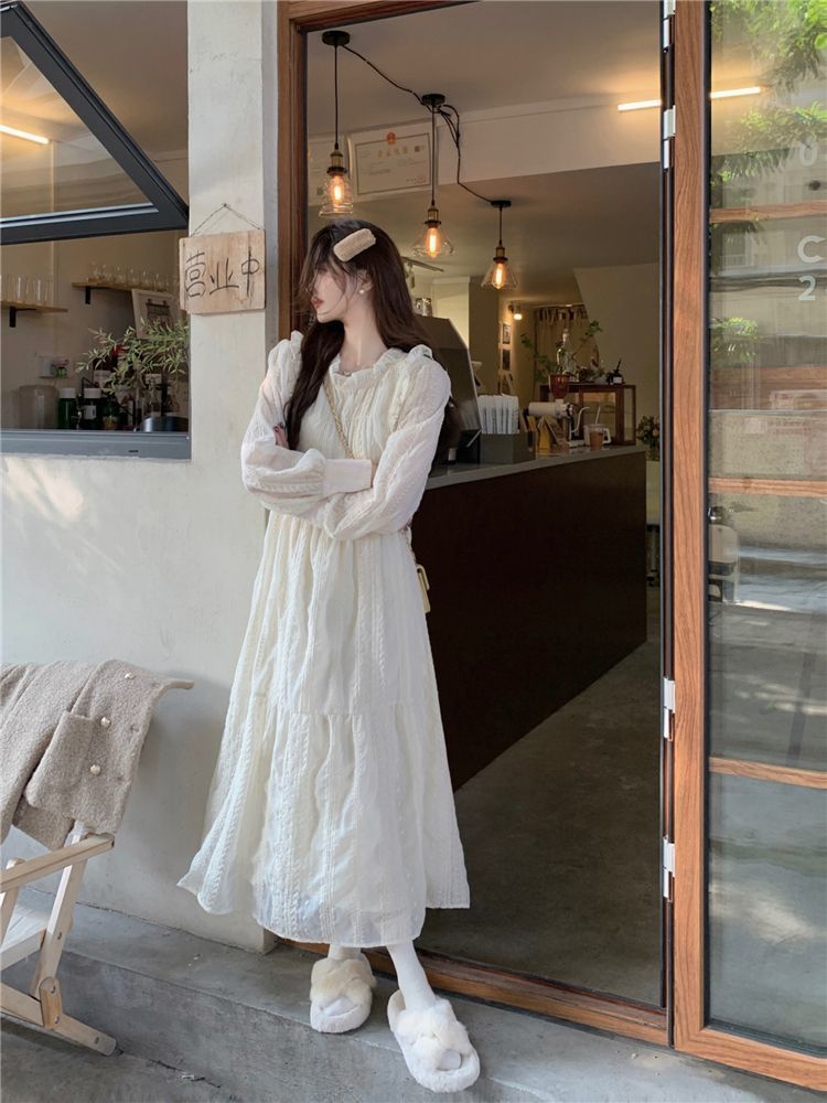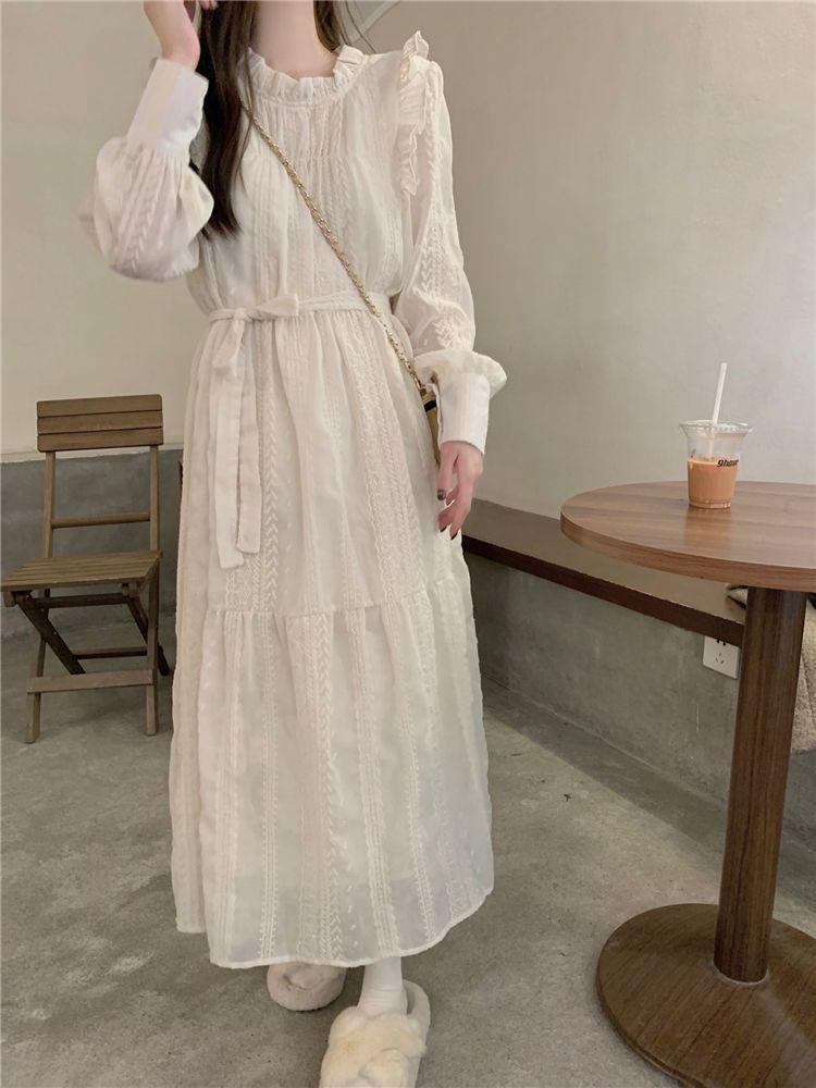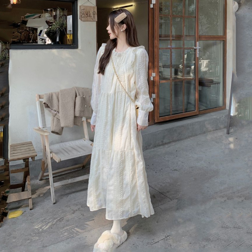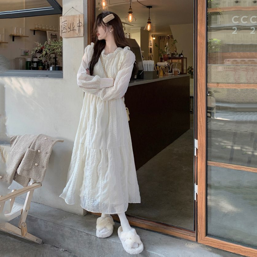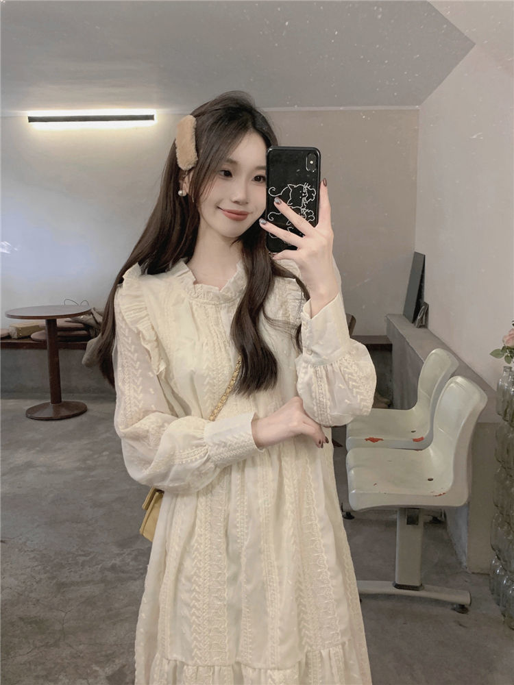 부드러운 레이스 원피스 가을과 겨울 2024 새로운 우아한 매우 요정 슬림 디자인 베이스 스커트 원피스스토어 가기