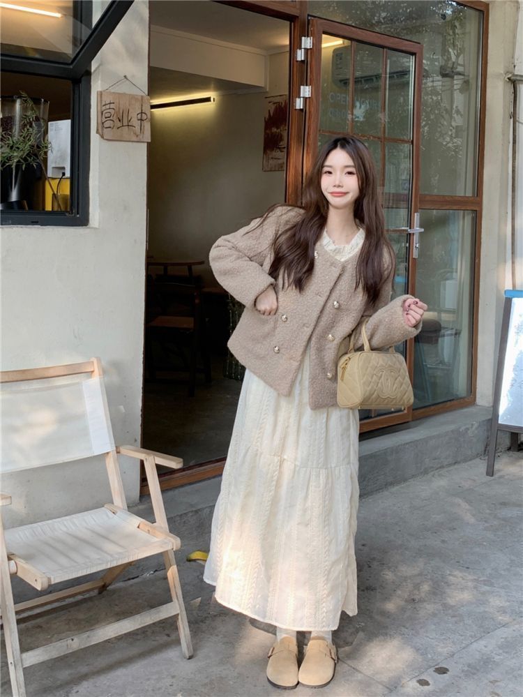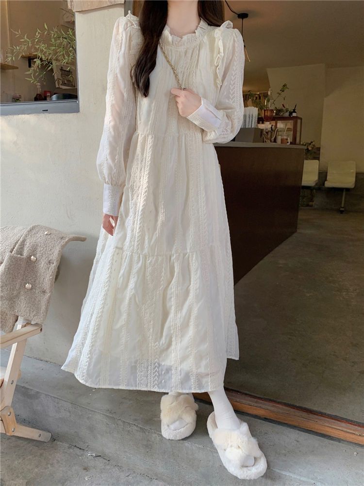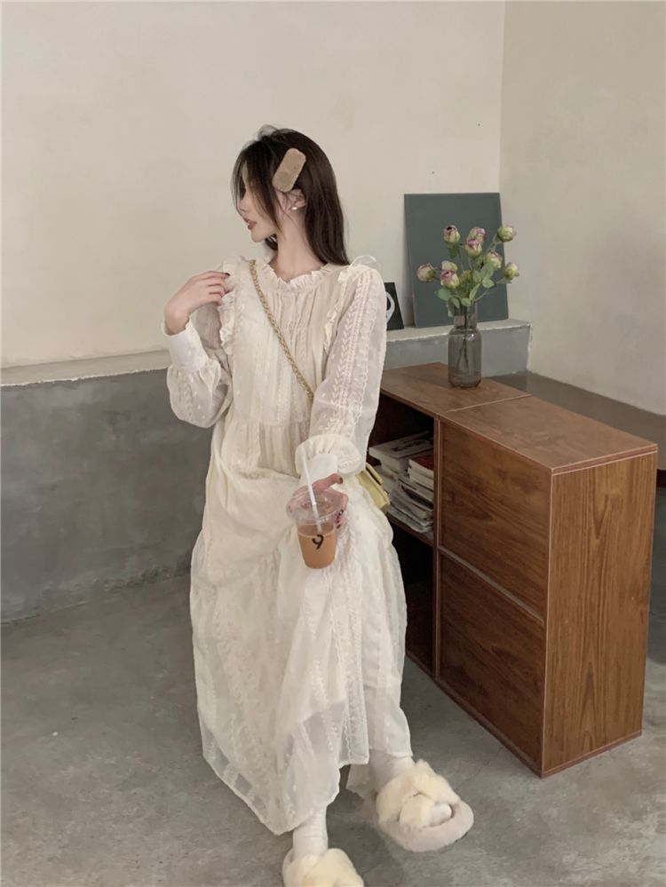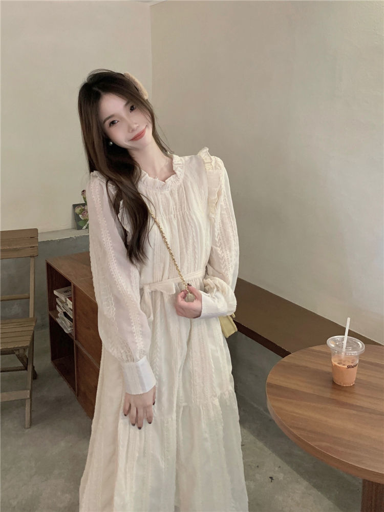 부드러운 레이스 원피스 가을과 겨울 2024 새로운 우아한 매우 요정 슬림 디자인 베이스 스커트 원피스스토어 가기