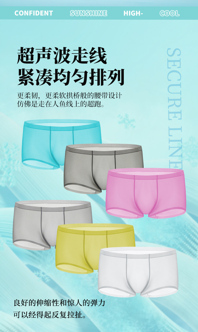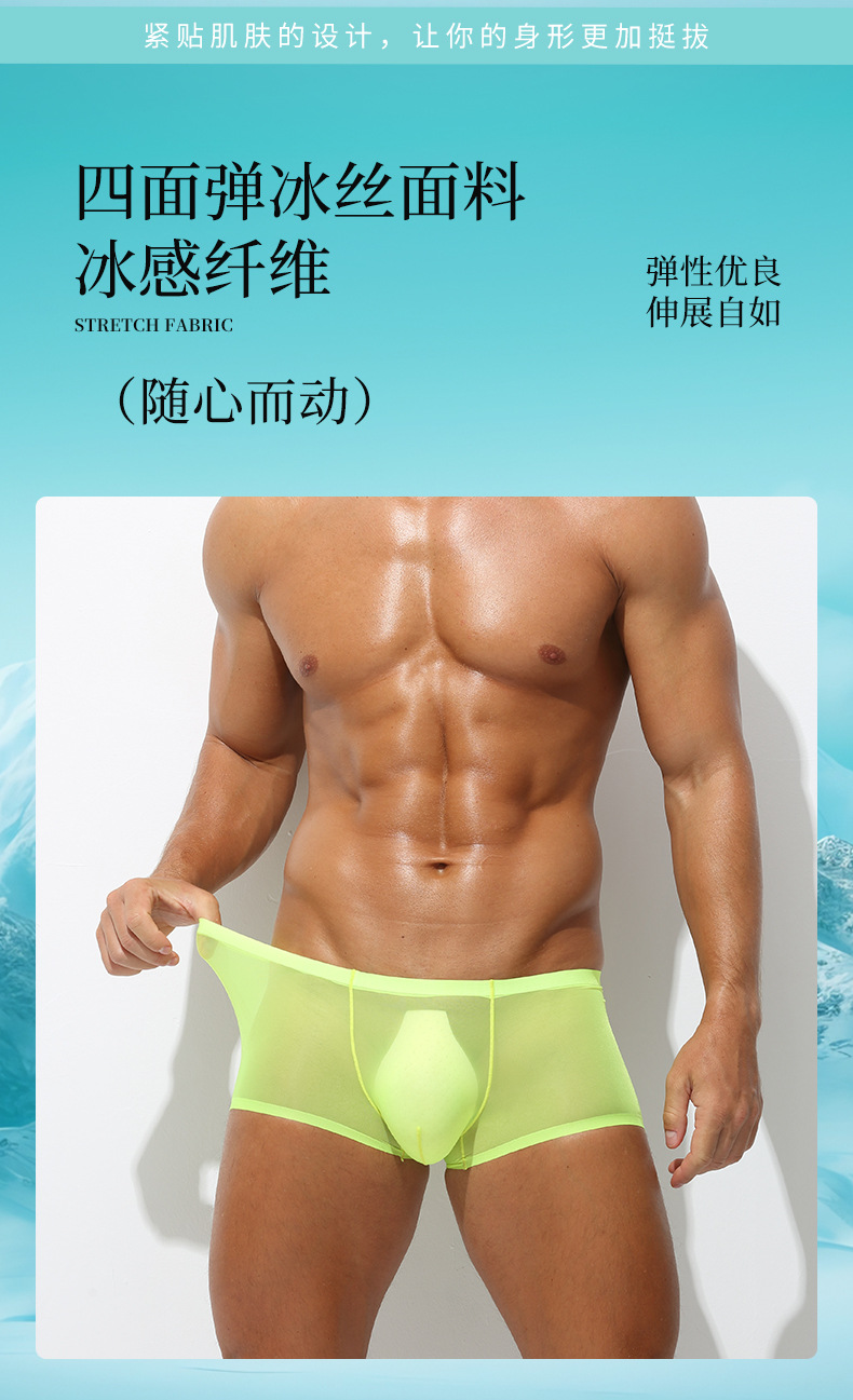 50g 초박형 투명 남성용 복서 네 모서리 얼음 실크 원피스 추적없는 낮은 허리 섹시한 복서스토어 가기