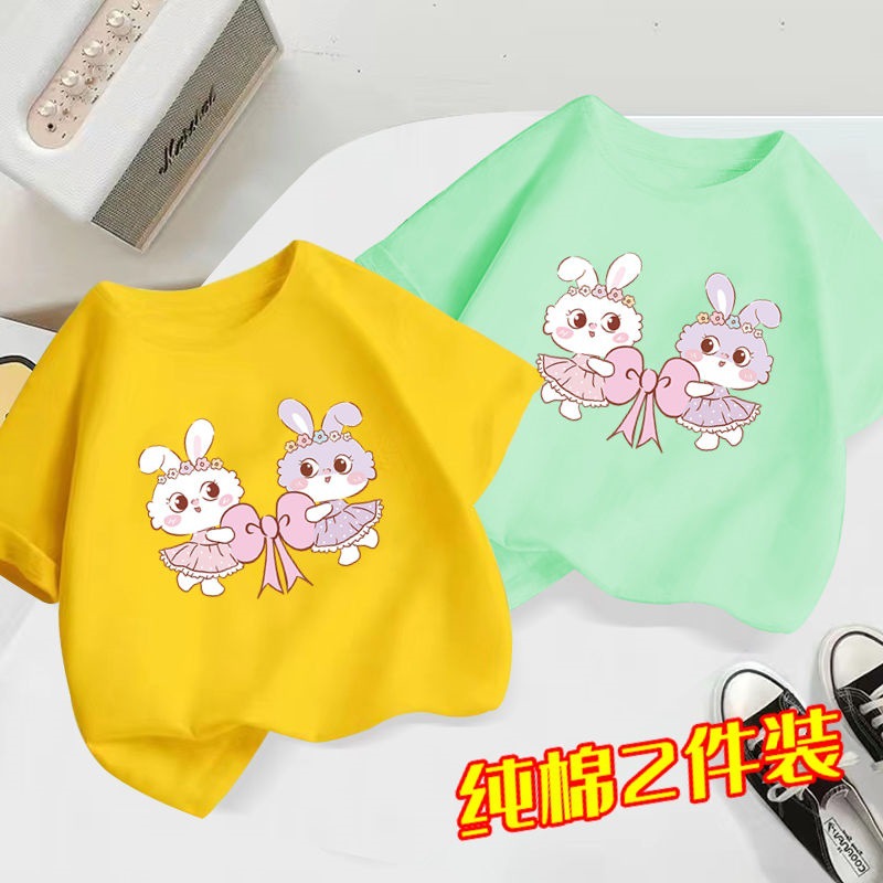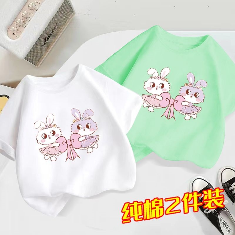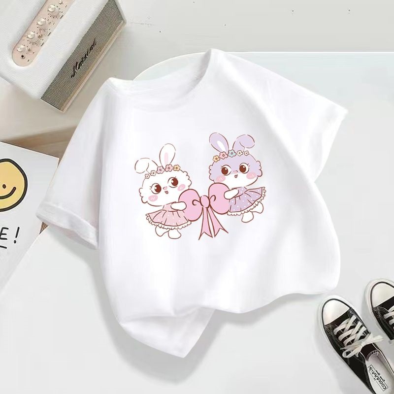 100 면 어린이 반팔 티셔츠 2024 새로운 도착 느슨한 중형 어린이 여름 소녀 소년 아기 서양식 탑스토어 가기