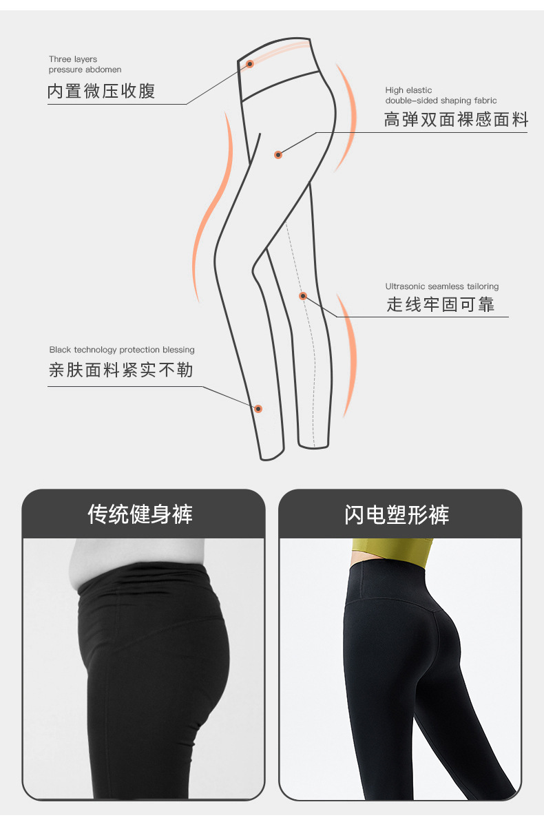 새로운 피트니스 클라우드 필라테스 힙업 하이웨이스트 캐주얼 스포츠 러닝 요가 팬츠 무봉제 요가복 다리길이 연출