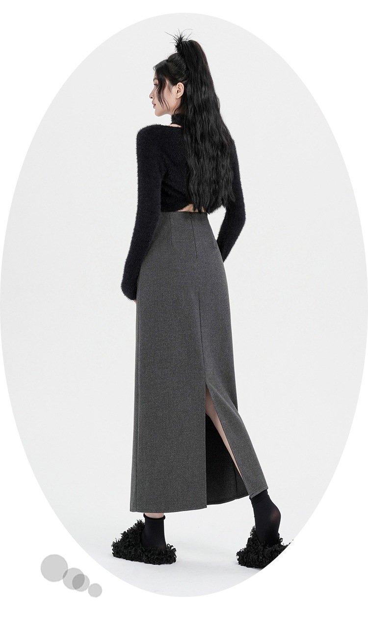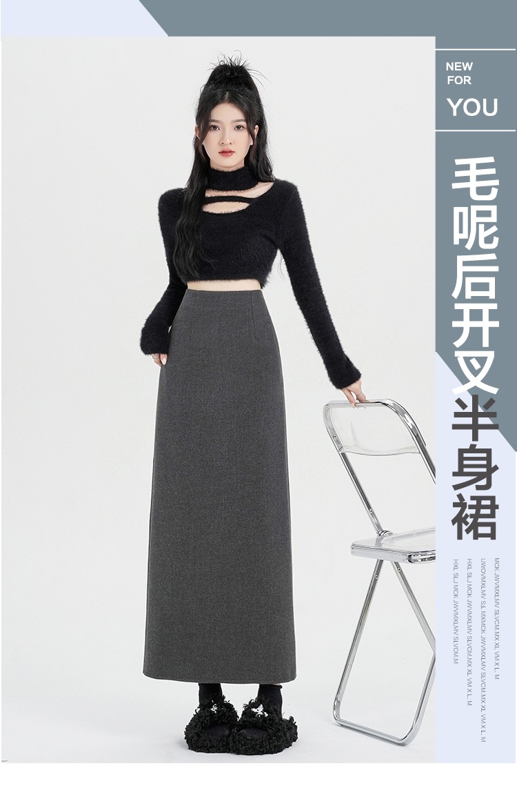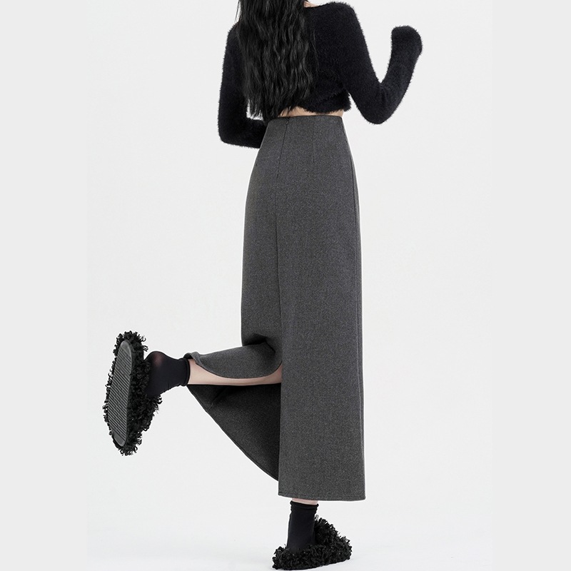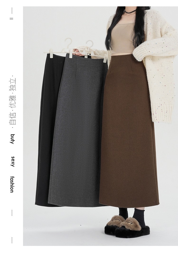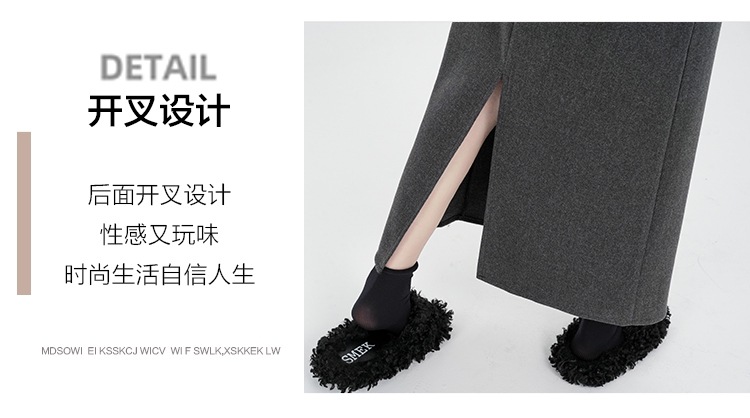캐시미어 원단 스커트 여성용 2025 가을 겨울 신상 힙을 감싸는 스트레이트 A라인 롱 스커트 두꺼운 원피스 뒤트임 스커트