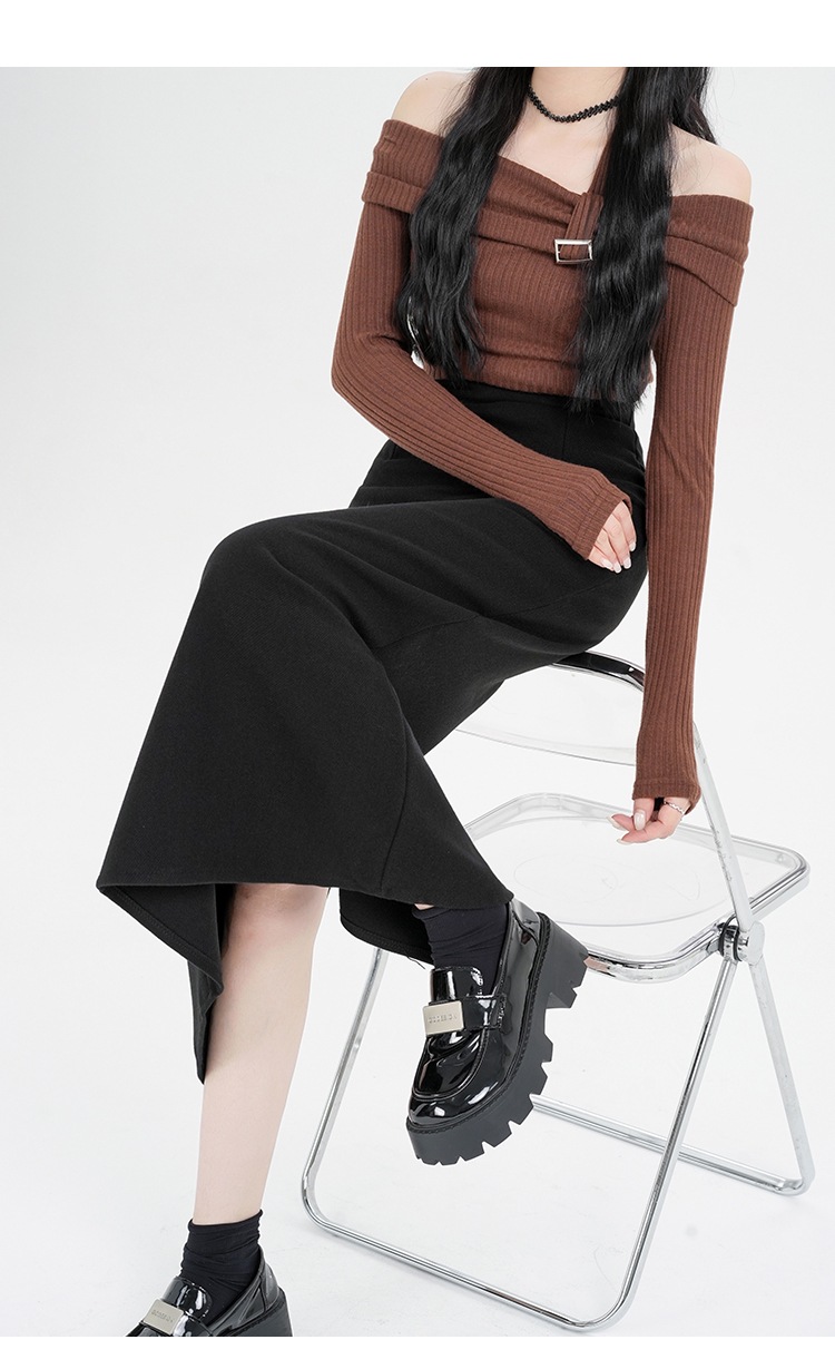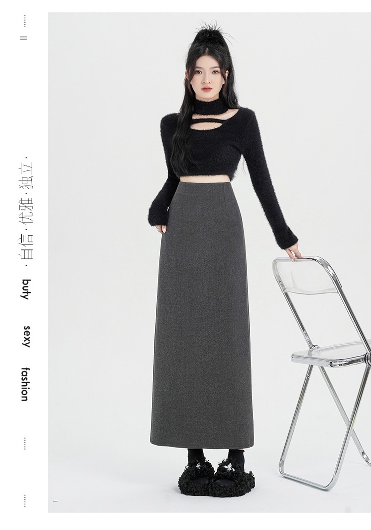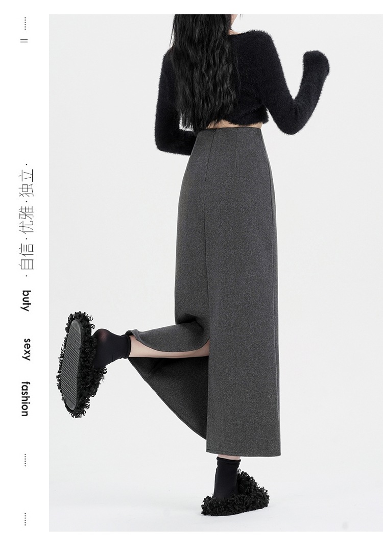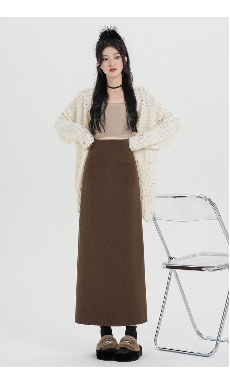 캐시미어 원단 스커트 여성용 2025 가을 겨울 신상 힙을 감싸는 스트레이트 A라인 롱 스커트 두꺼운 원피스 뒤트임 스커트