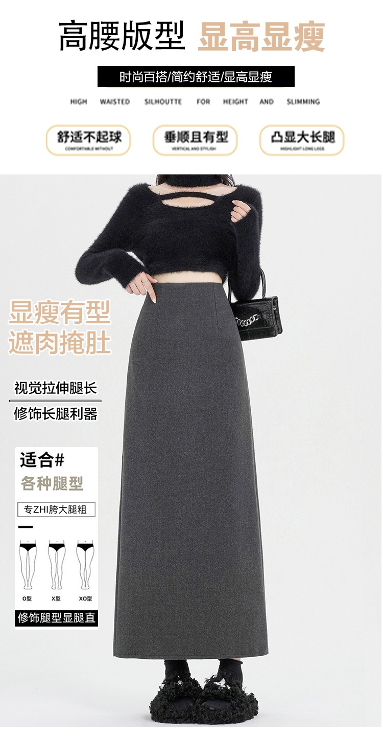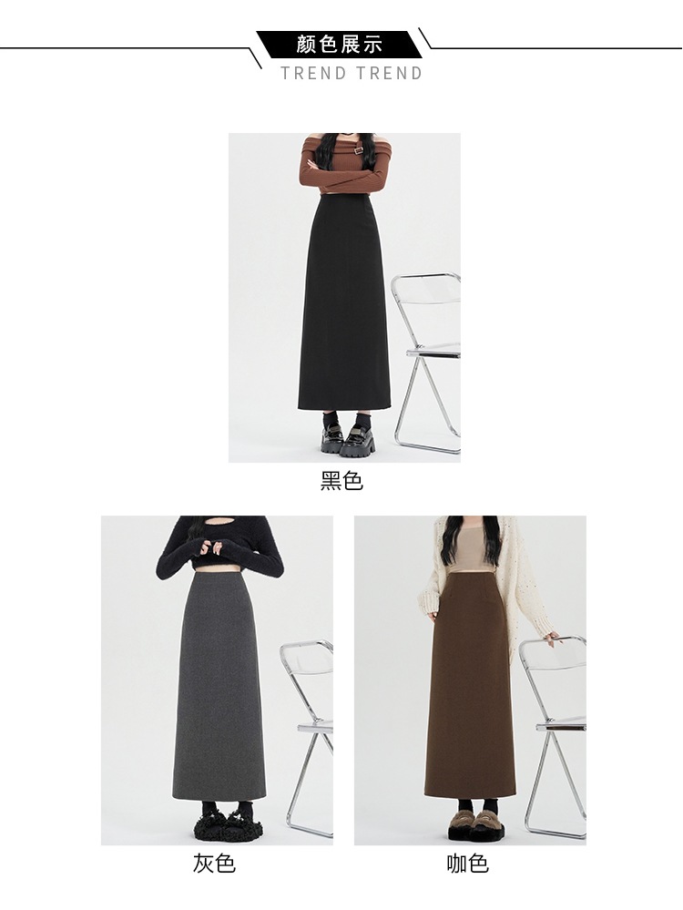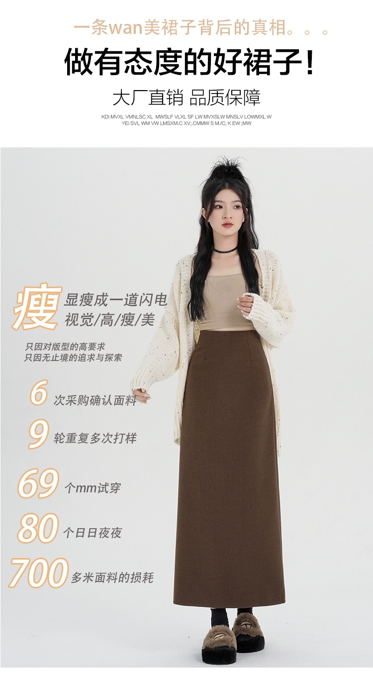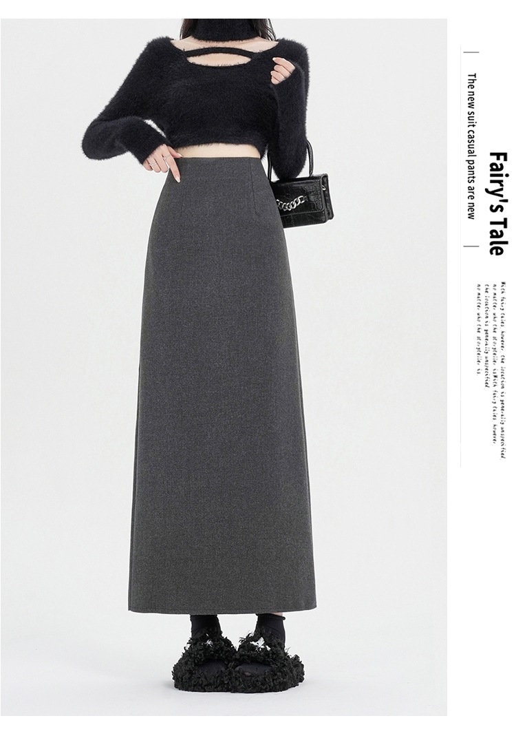 캐시미어 원단 스커트 여성용 2025 가을 겨울 신상 힙을 감싸는 스트레이트 A라인 롱 스커트 두꺼운 원피스 뒤트임 스커트스토어 가기