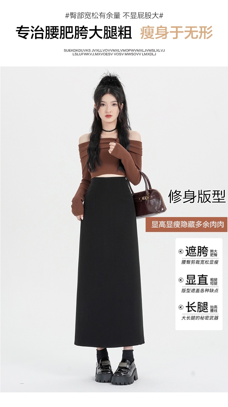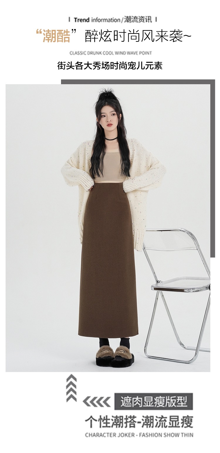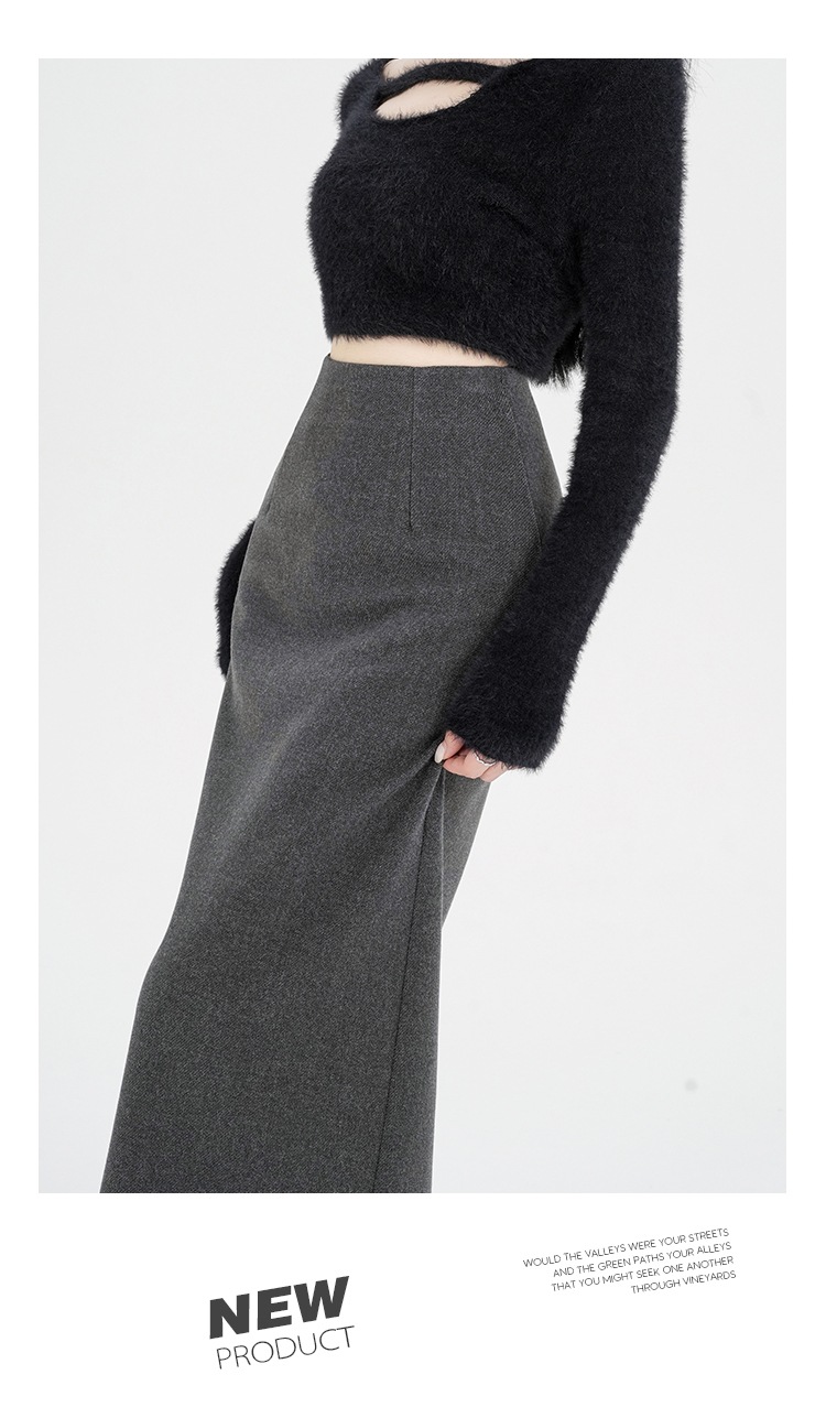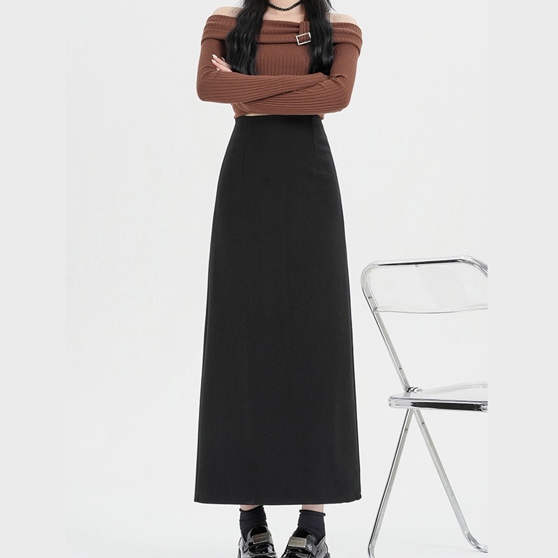캐시미어 원단 스커트 여성용 2025 가을 겨울 신상 힙을 감싸는 스트레이트 A라인 롱 스커트 두꺼운 원피스 뒤트임 스커트스토어 가기