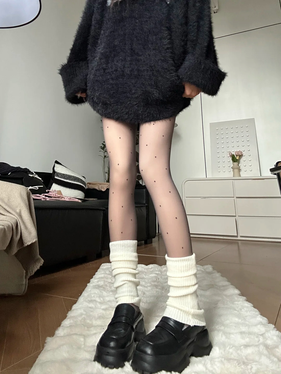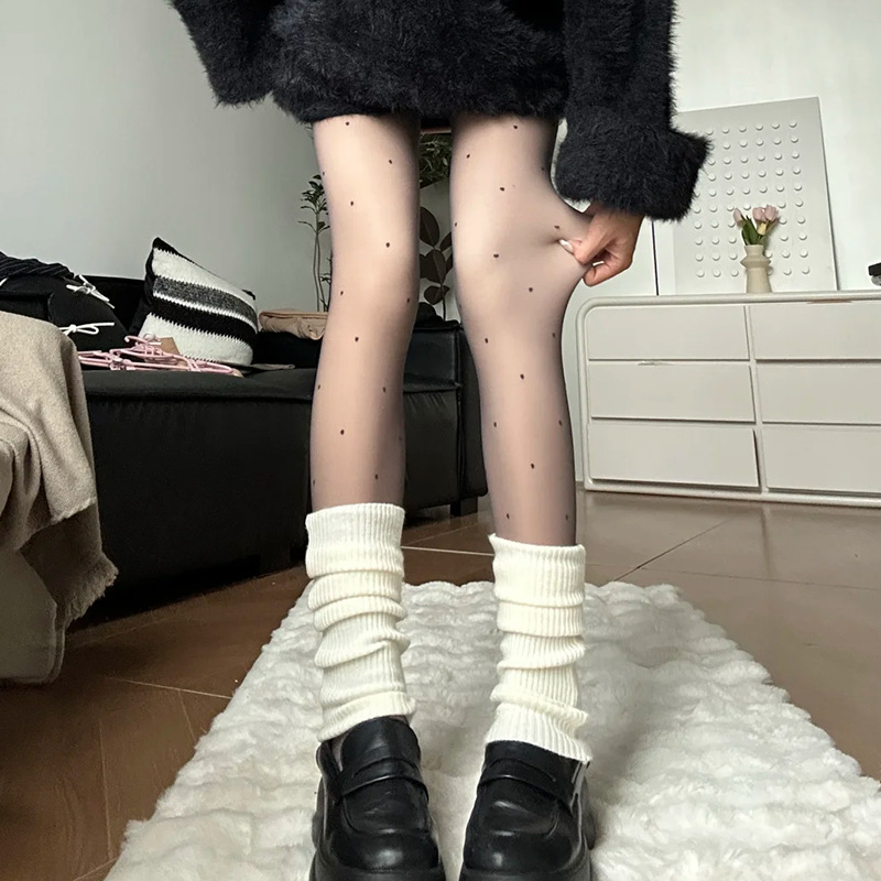 섹시한 웨이브 닷 블랙 실크 스타킹 가을과 겨울 기모 두꺼운 더블 레이어 라이트 레그 아티팩트 블랙 스킨 가짜 고기 베이스 팬티 스타킹스토어 가기