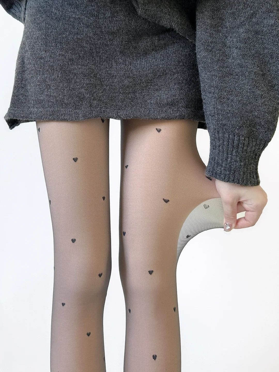 섹시한 웨이브 닷 블랙 실크 스타킹 가을과 겨울 기모 두꺼운 더블 레이어 라이트 레그 아티팩트 블랙 스킨 가짜 고기 베이스 팬티 스타킹