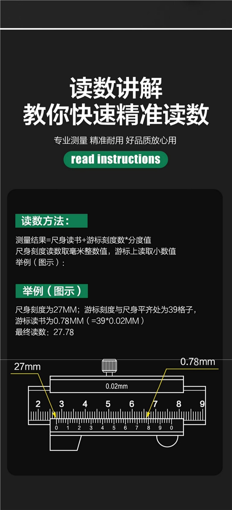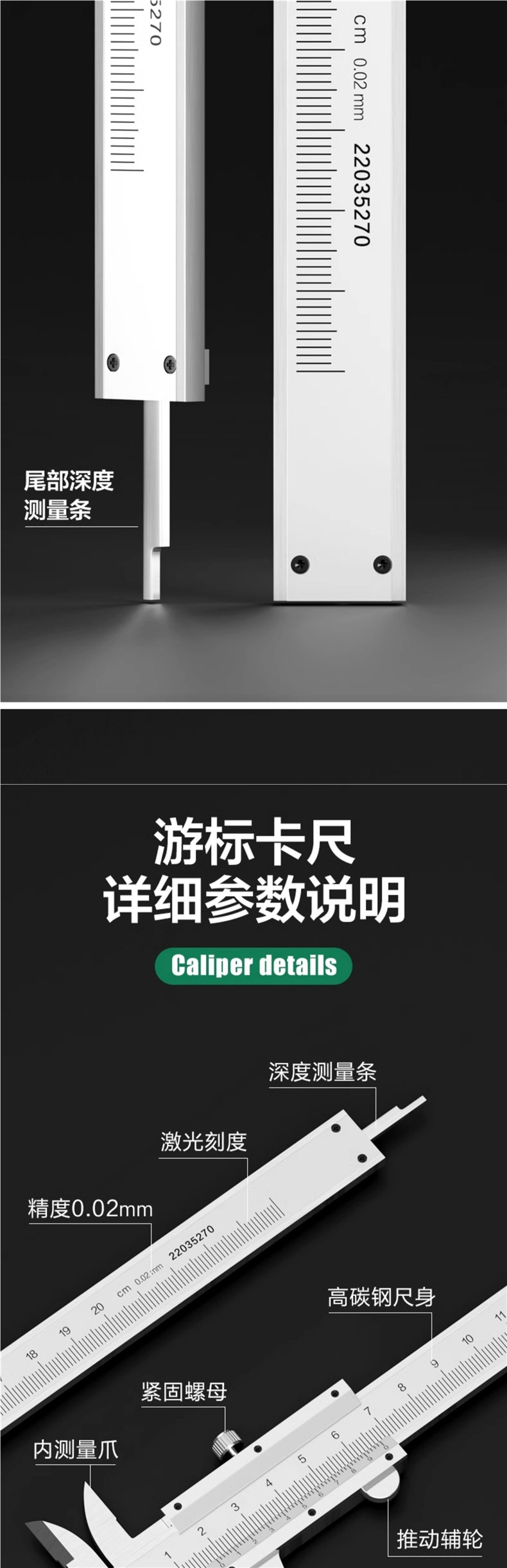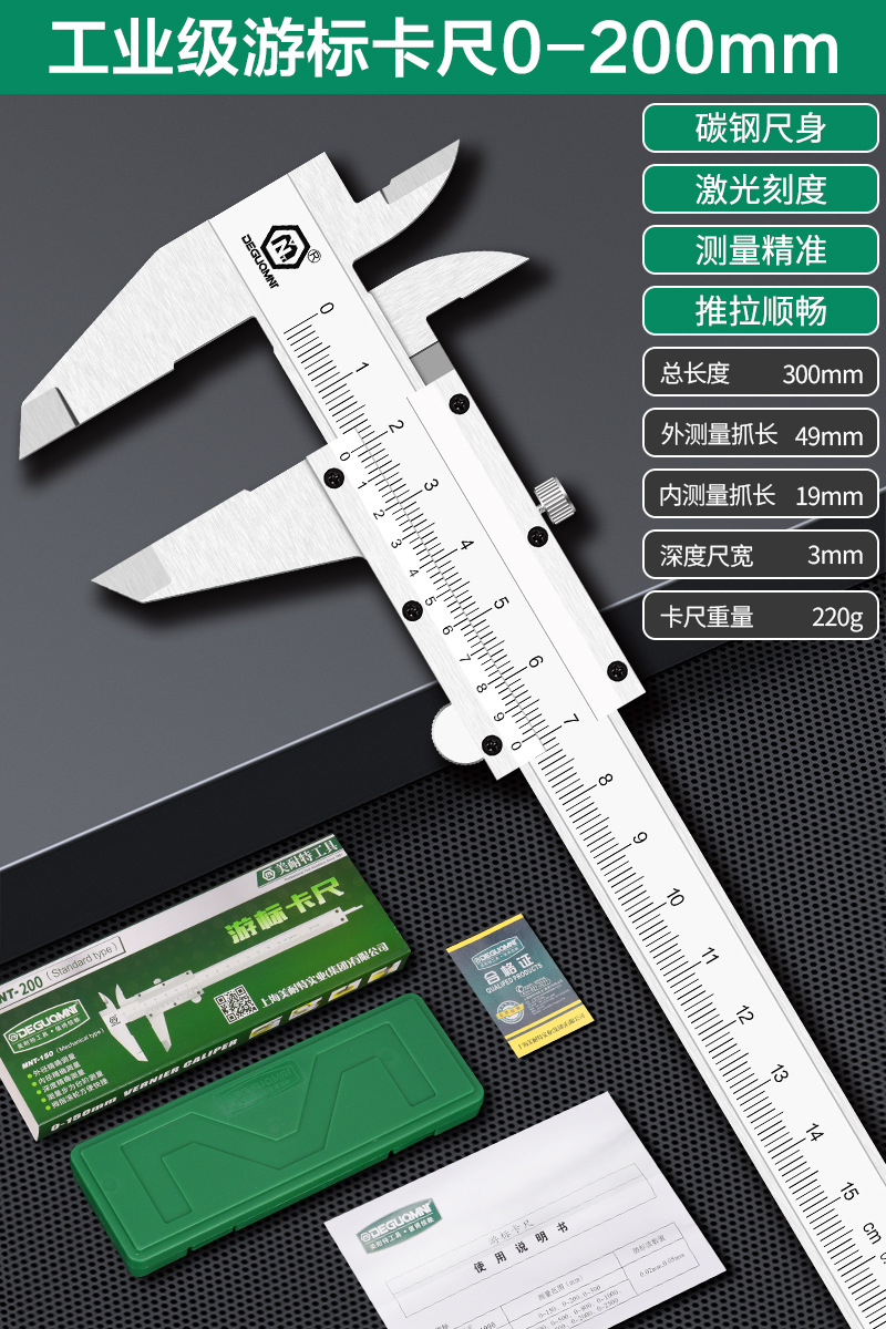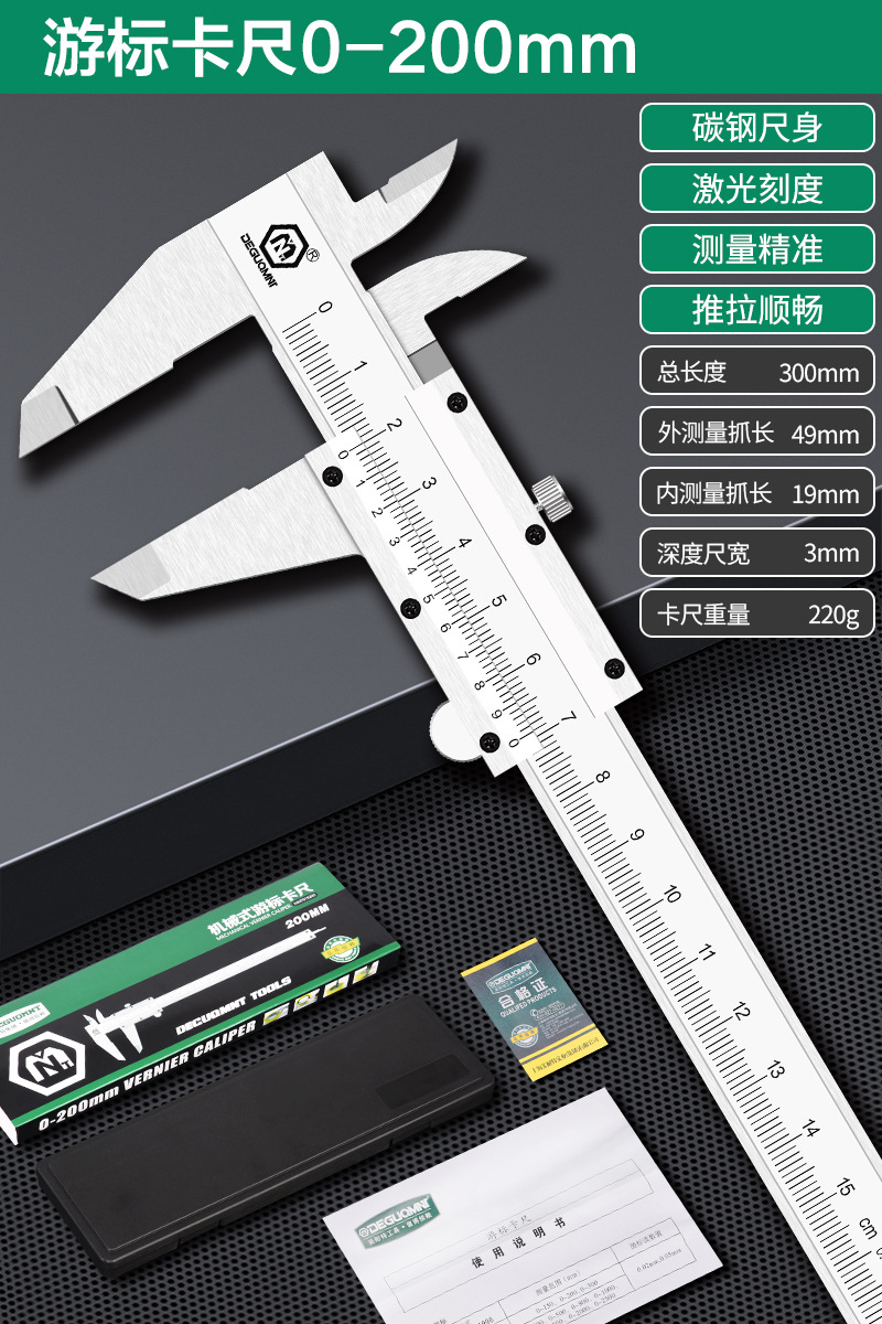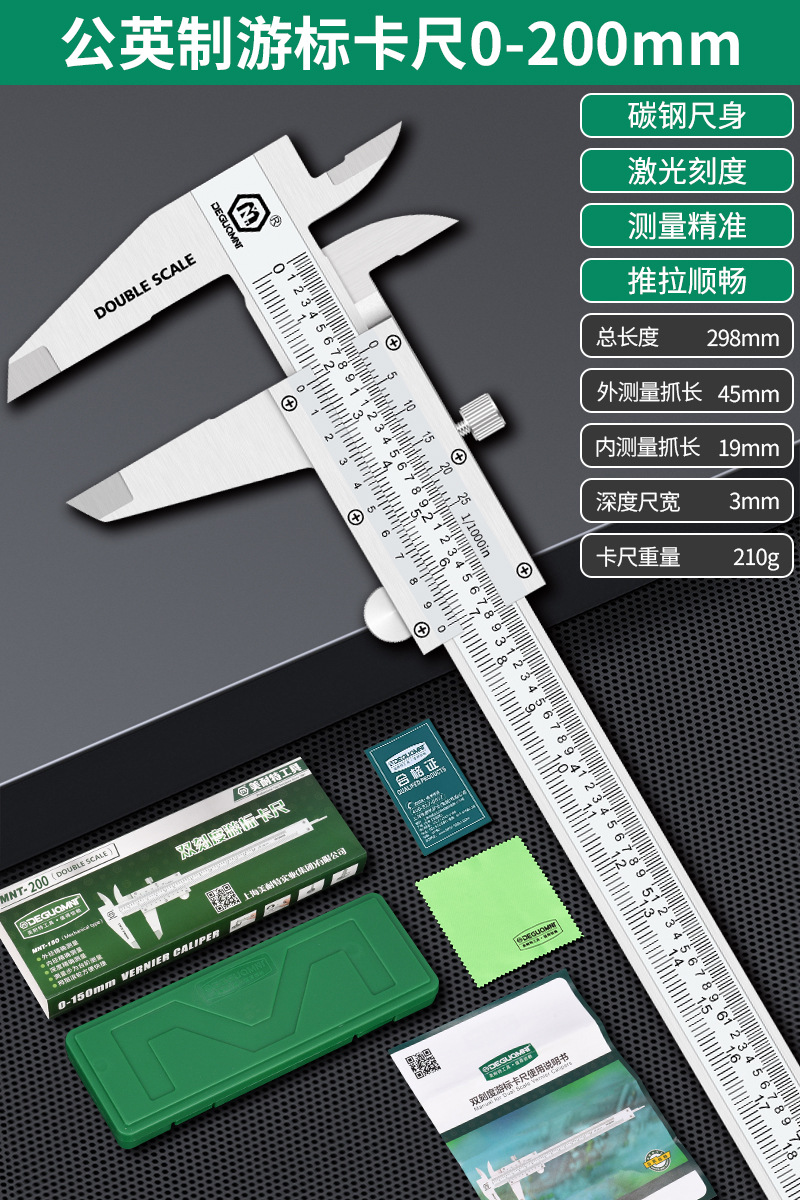 • [산업용/고정밀 패키지 정밀] 0-200mm 미터법 및 영국식 이중 스케일 버니어 캘리퍼스