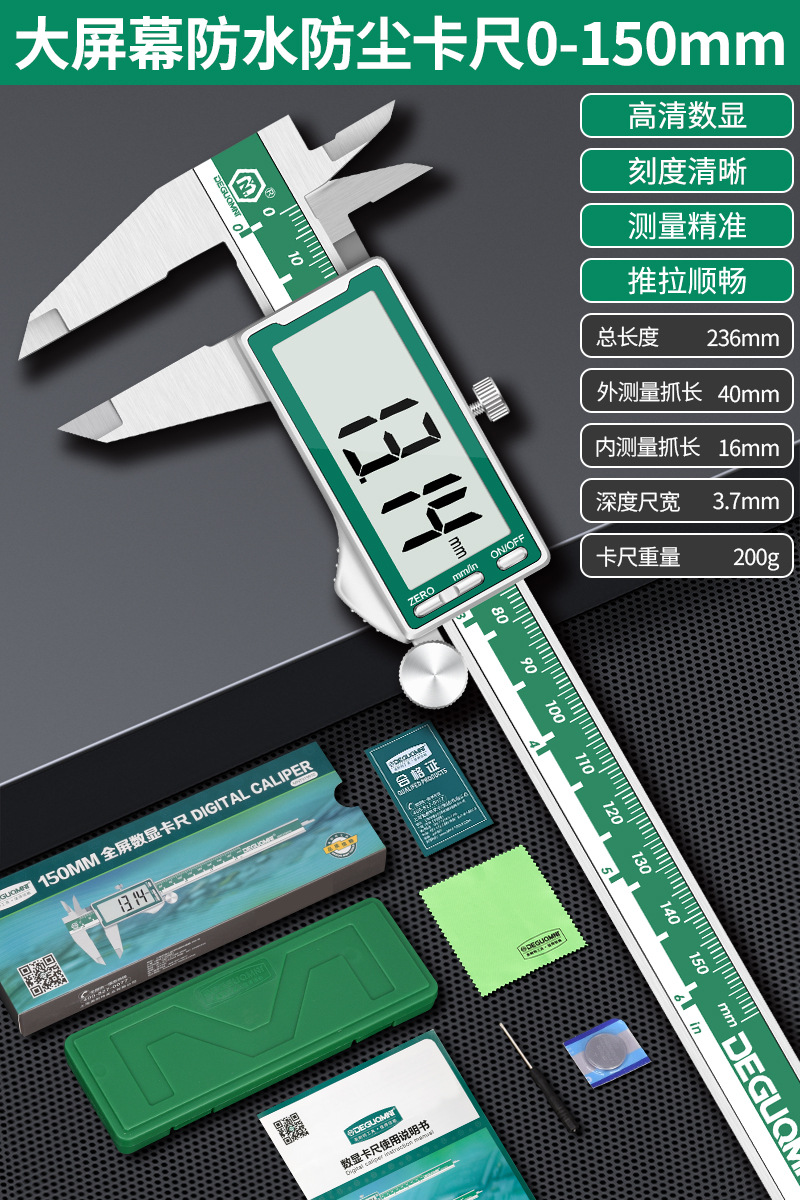 • [초대형 스크린 IP54 방수 및 방진/측정 감지 포함] 0-150mm 스테인레스 스틸 디지털 캘리퍼스