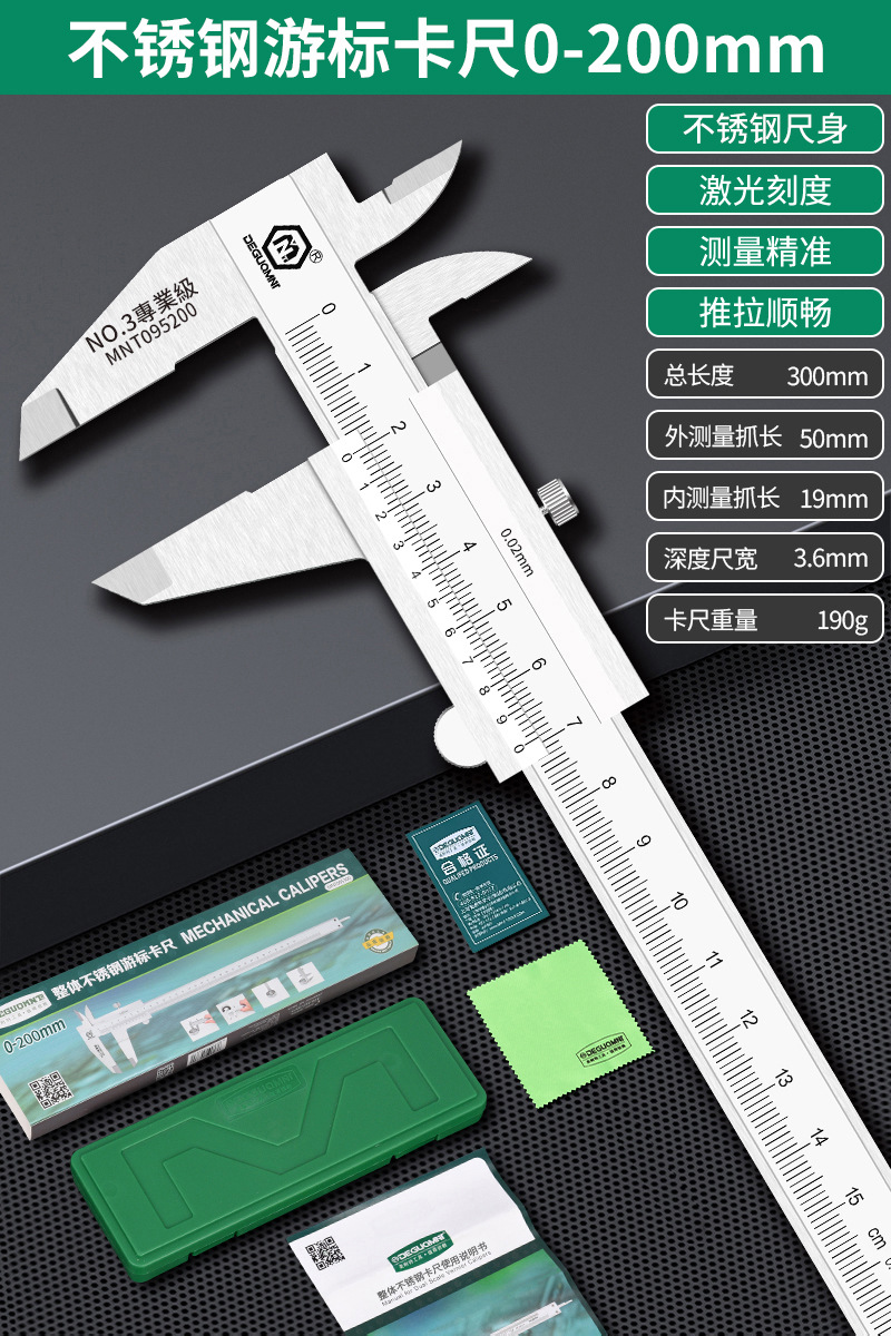 • [전문가 등급/측정 감지 포함] 0-200mm 스테인레스 스틸 버니어 캘리퍼스