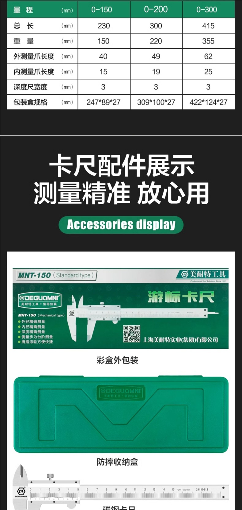 • [산업용/고정밀 패키지 정밀] 0-300mm 미터법 및 영국식 이중 스케일 버니어 캘리퍼스
