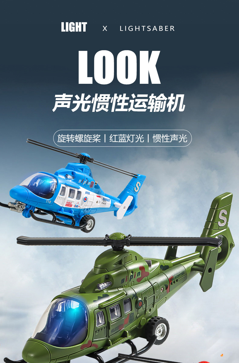 소년 시뮬레이션 헬리콥터 수송 항공기 군사 모델 조명 음향 효과 관성 어린이 장난감 항공기 도매스토어 가기