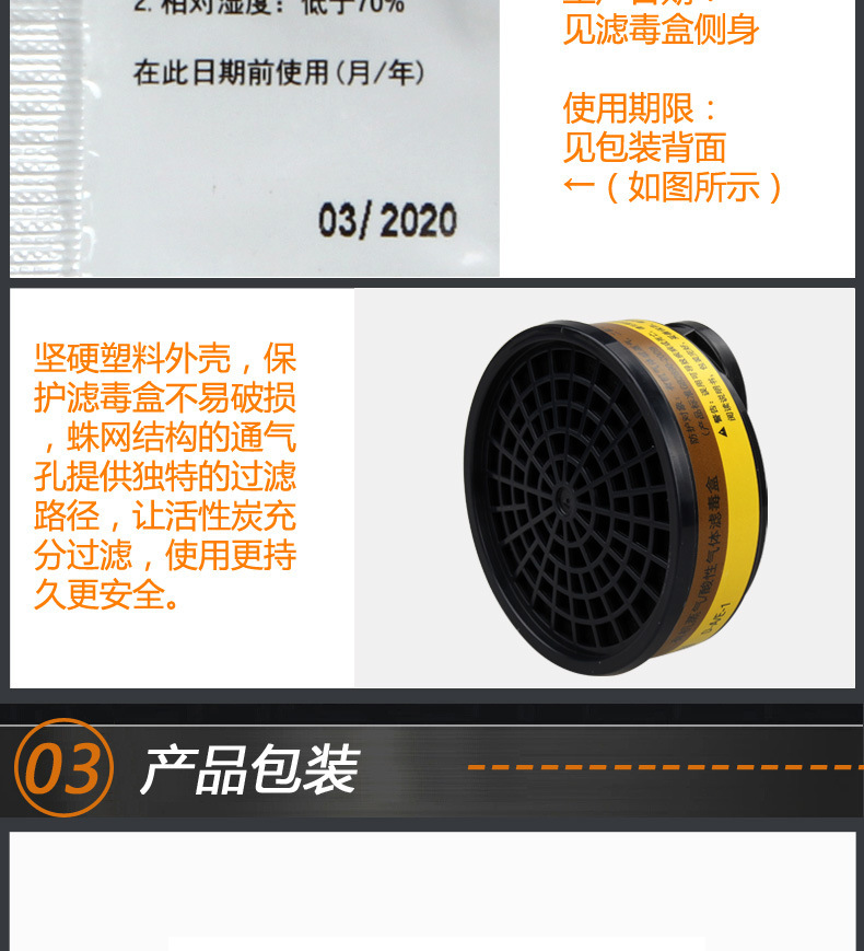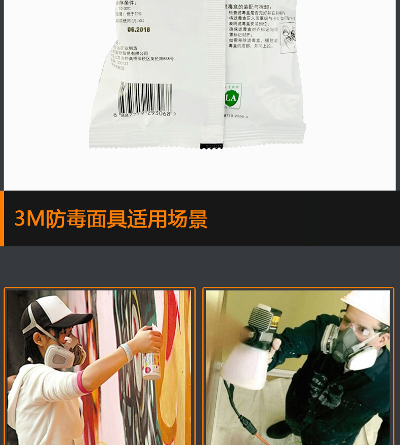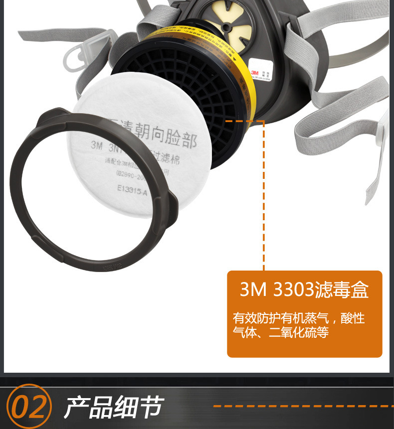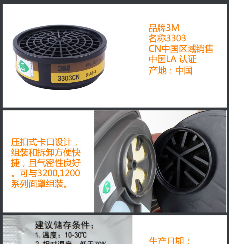 3m3303CN滤毒盒有机蒸汽酸性气体防毒面具滤盒【原装正品1个/包】