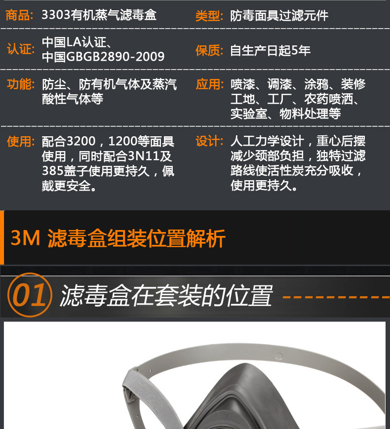 3m3303CN 필터 박스 유기 증기 산 가스 마스크 필터 박스 [1/가방]스토어 가기