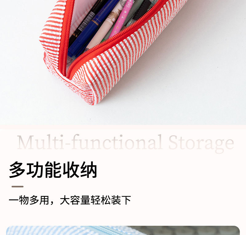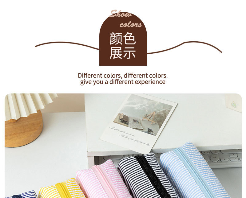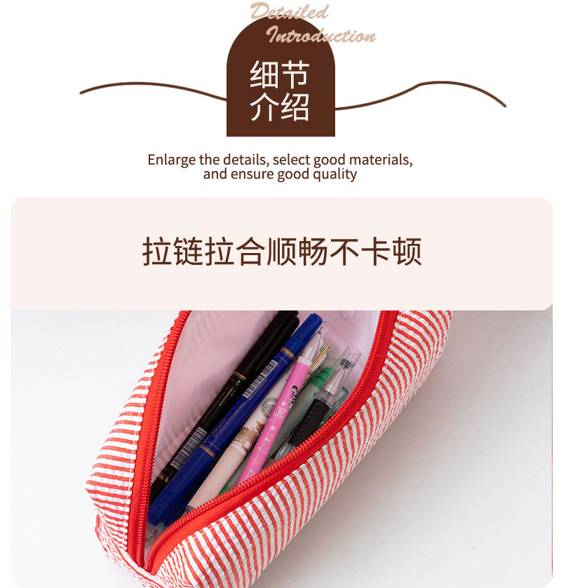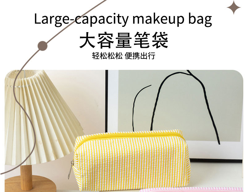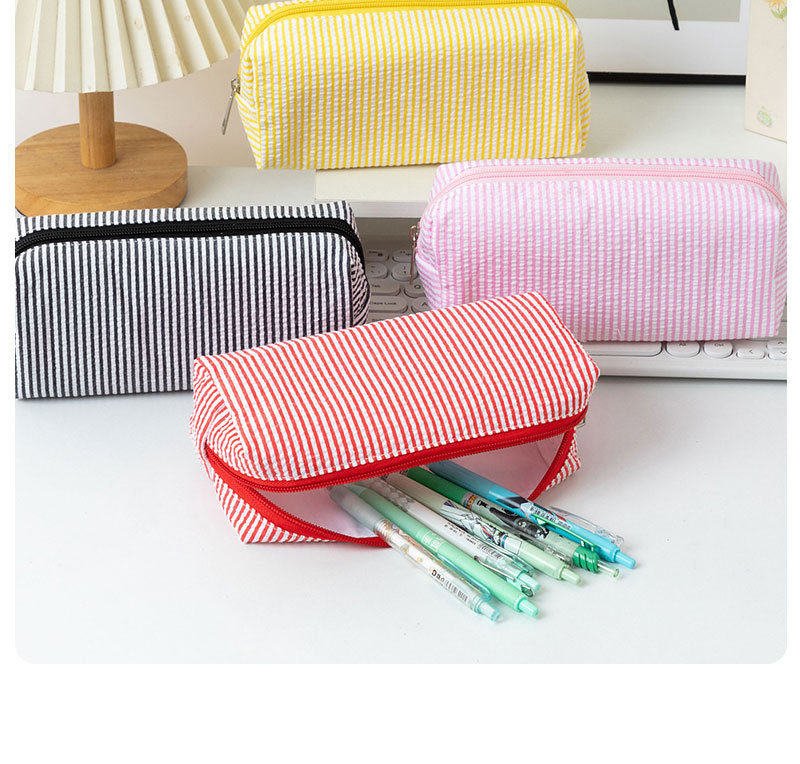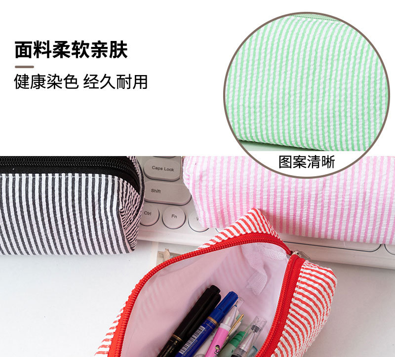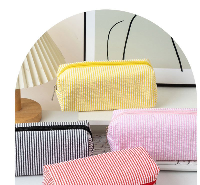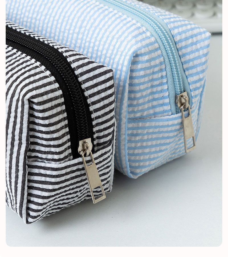 국경 간 뜨거운 판매 Seersucker 연필 케이스 학생 데스크톱 문구 적합 가방 대용량 자수 줄무늬 여행 보관 가방