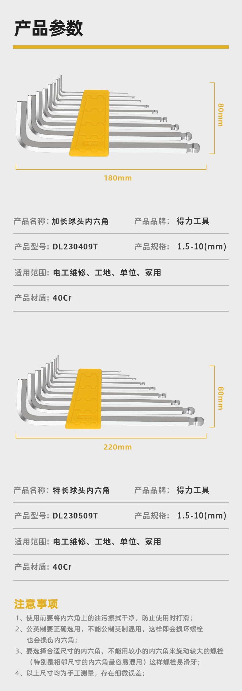 델리 육각 렌치 세트 미터법 육각 렌치 세트 다기능 스크루드라이버 L자형 평머리 볼머리