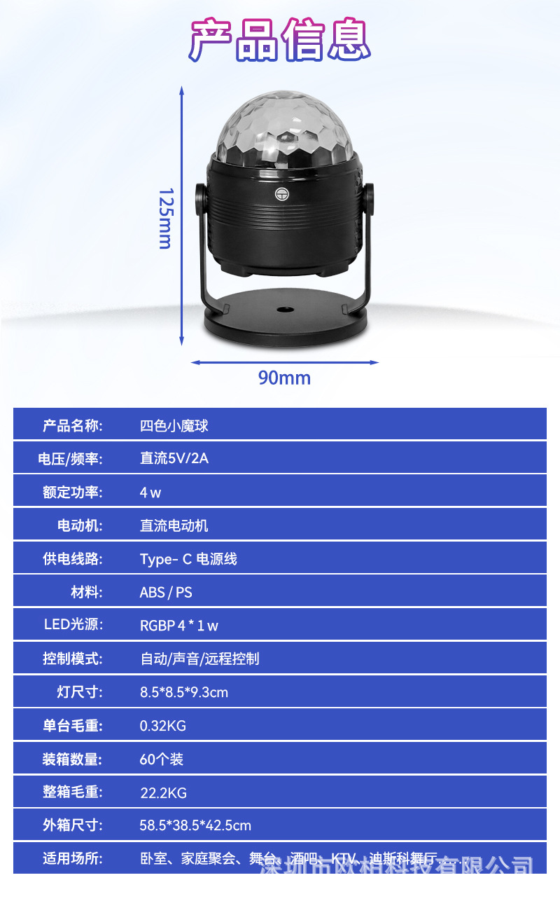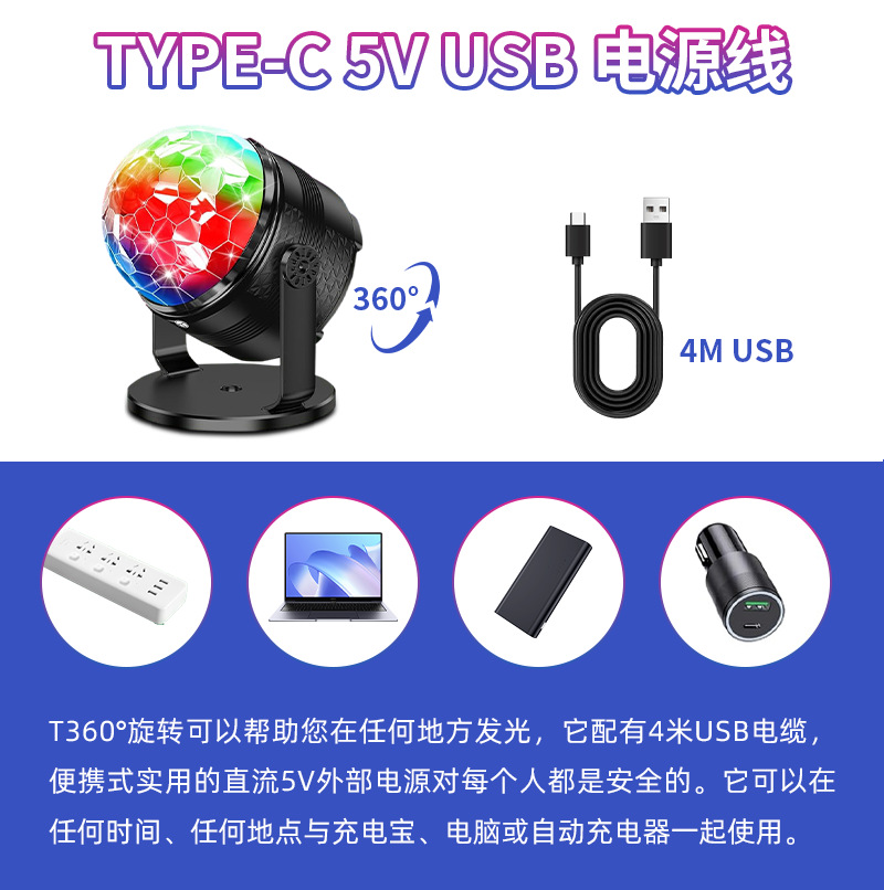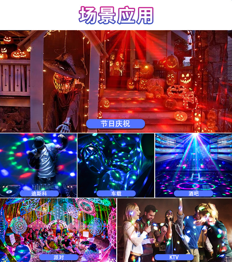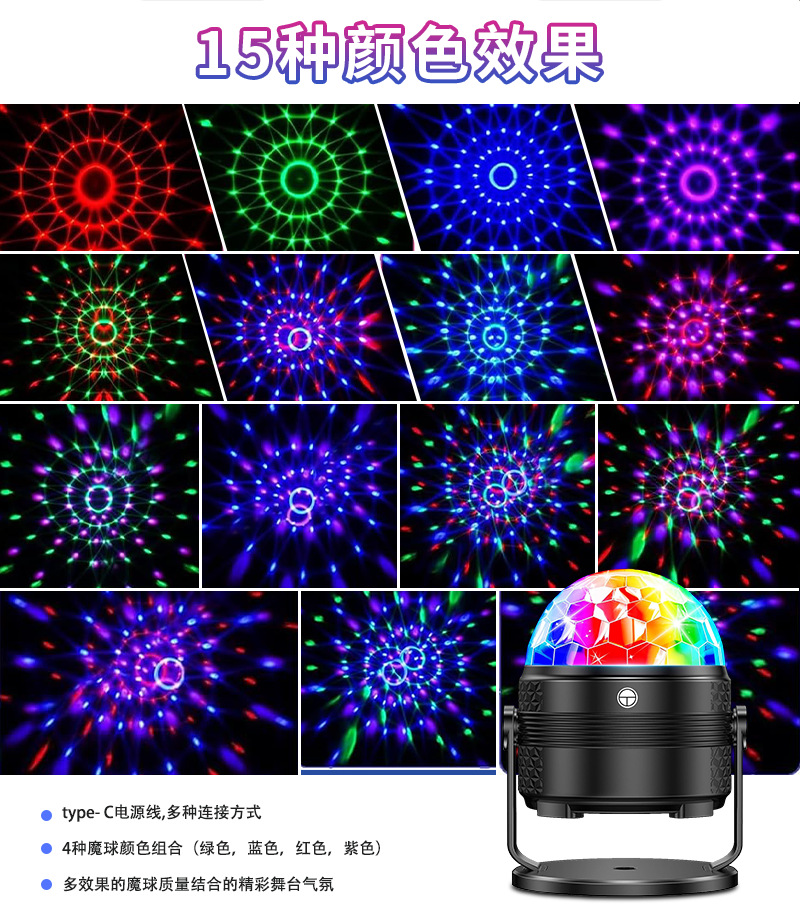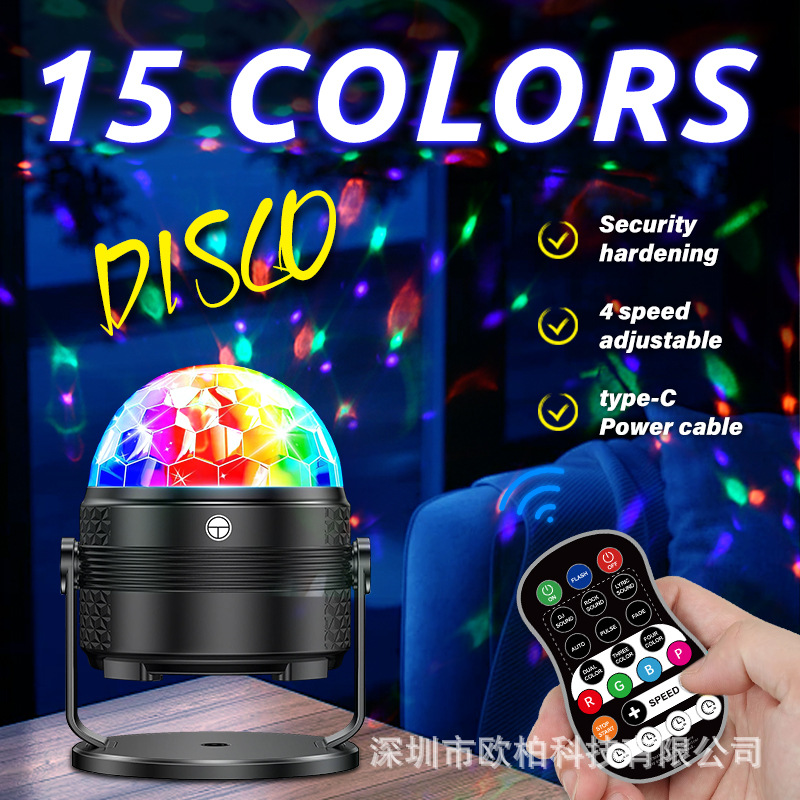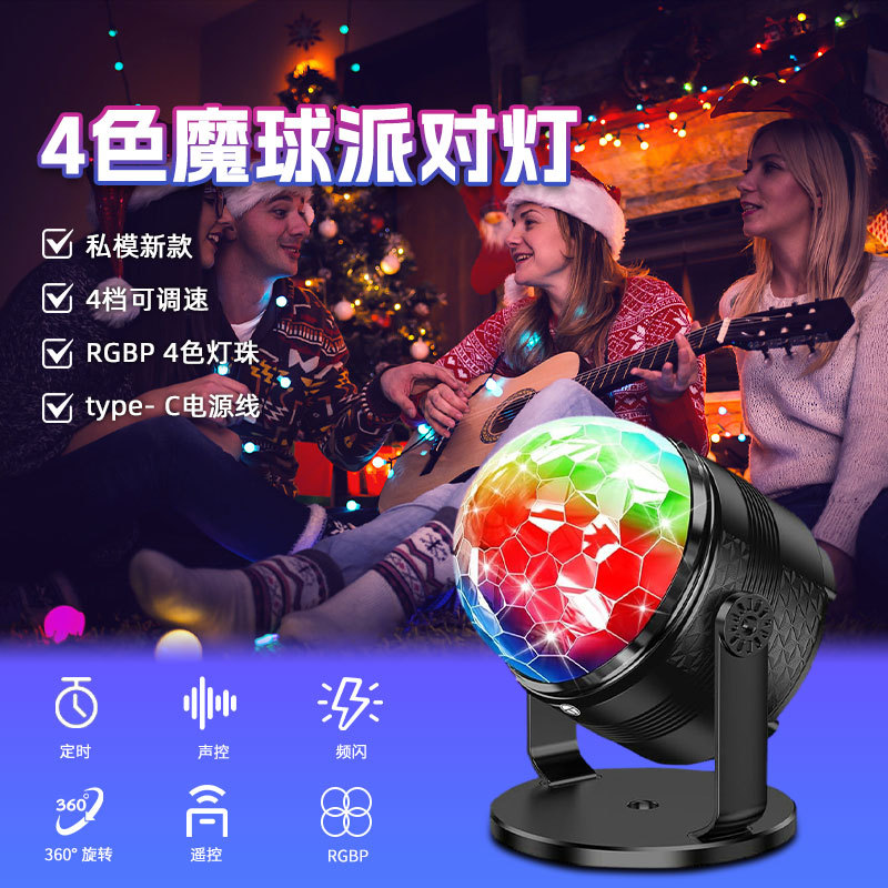 新款迪斯科派对dj蹦迪舞台灯圣诞星空投影KTV七彩旋转氛围魔球灯