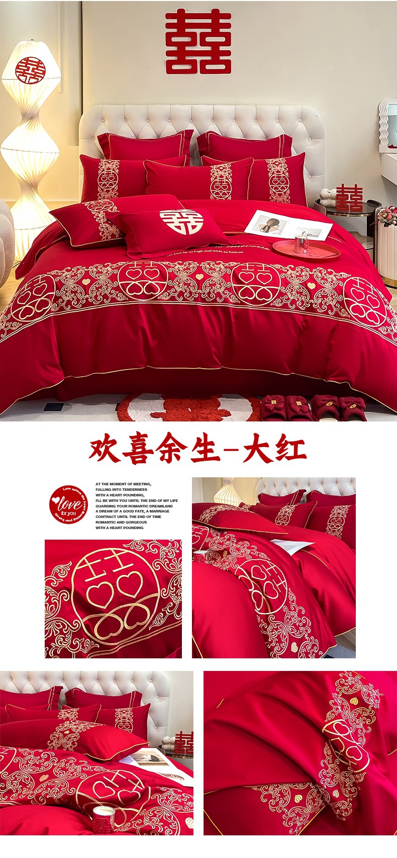 중국 결혼식 네 조각 빨간 웨딩 침대 시트 퀼트 세트 웨딩 룸 해피 퀼트 완벽한 웨딩 지참금 세트스토어 가기