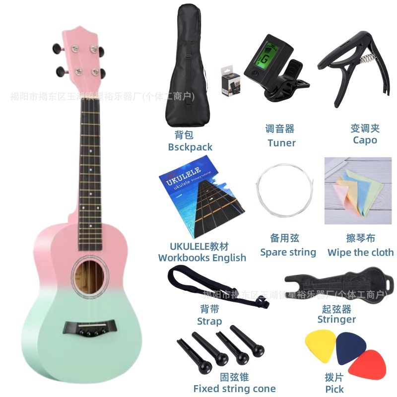 • 23inch 우쿨렐레 [그라데이션 핑크 그린] + 액세서리 패키지