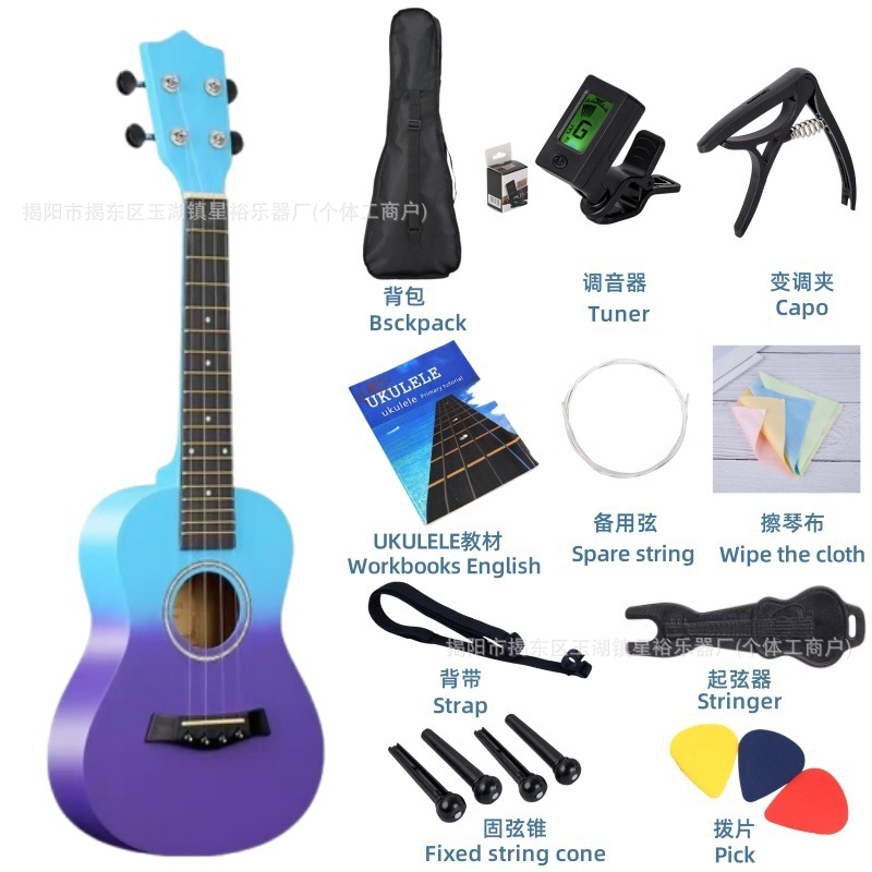• 23inch 우쿨렐레 [블루와 퍼플 그라데이션] + 액세서리 패키지