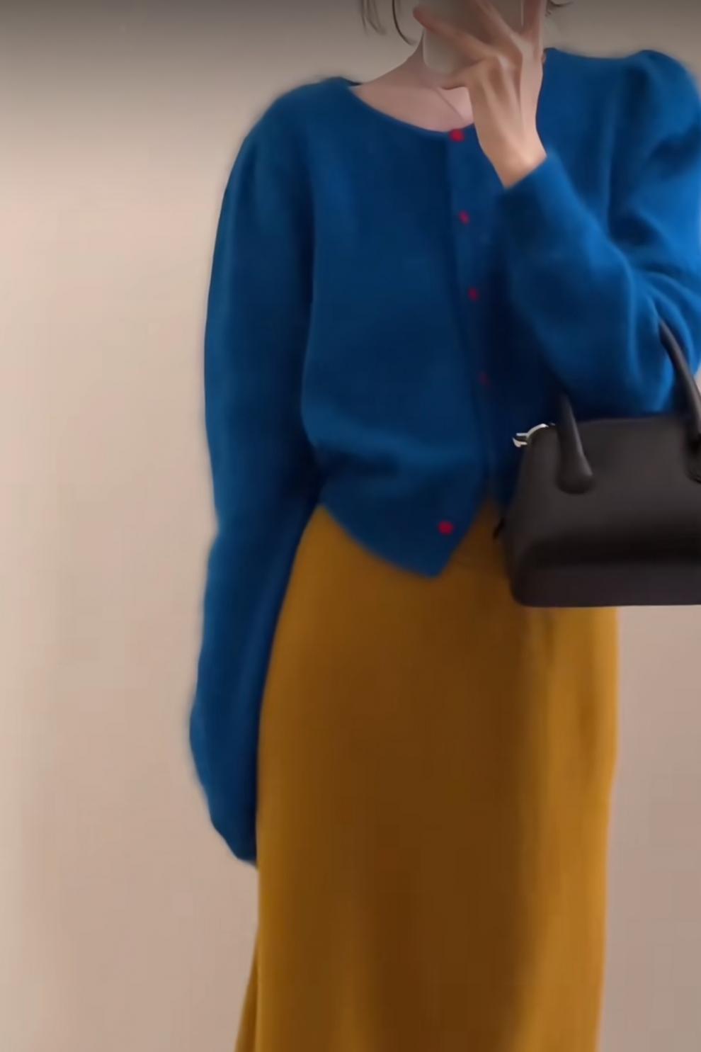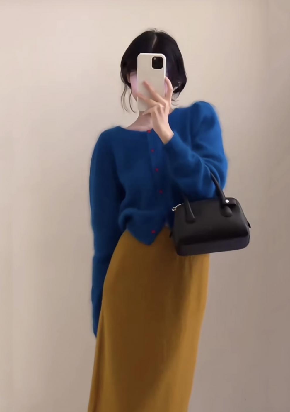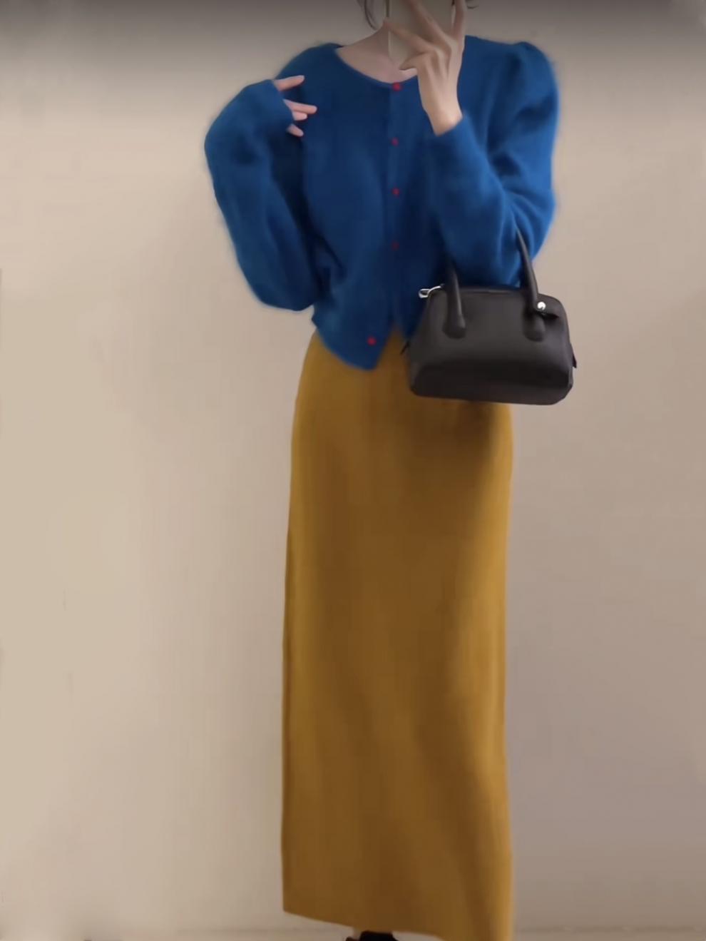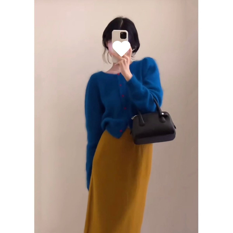 2024 새로운 빈티지 부드러운 세트 긴 소매 둥근 목 니트 카디건 여성용 가을과 겨울 높은 허리 스커트 투피스 세트스토어 가기