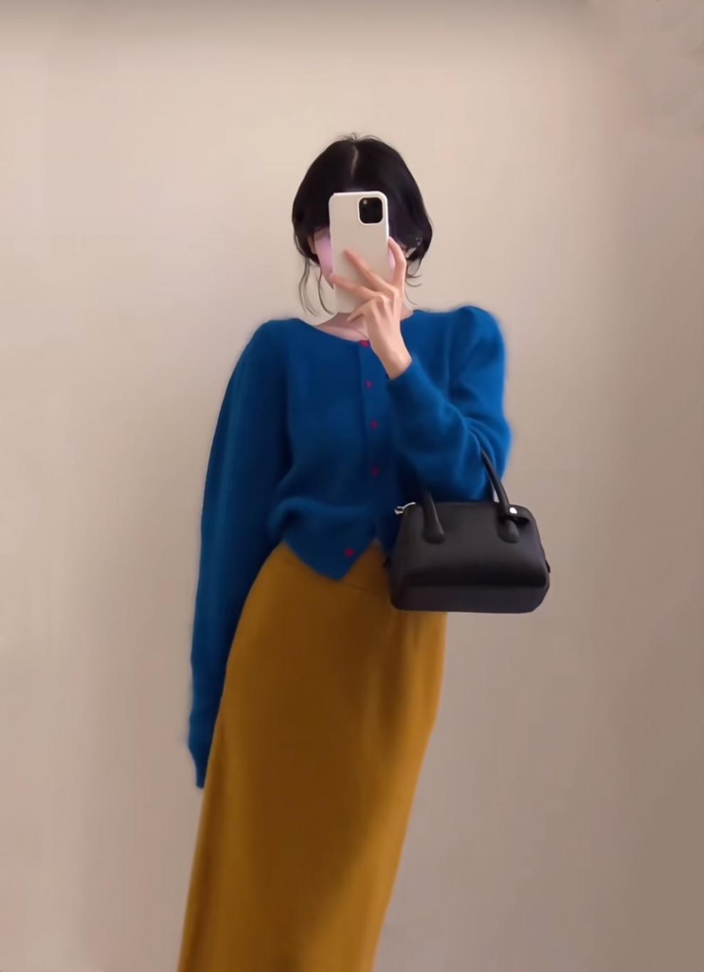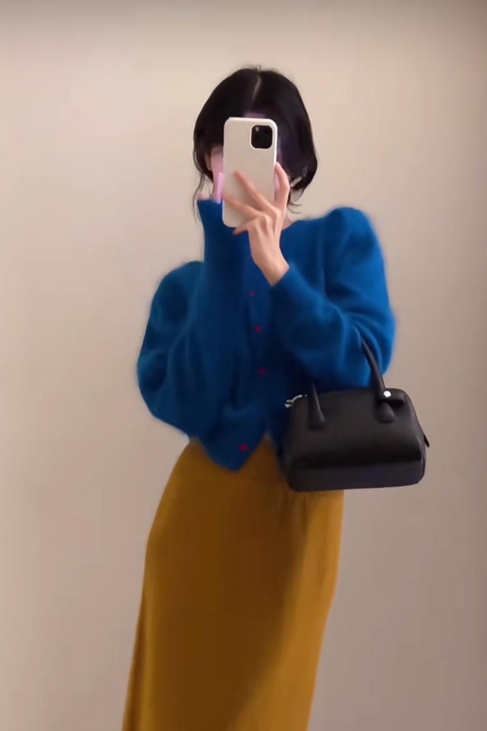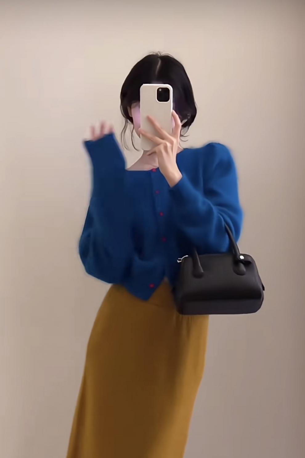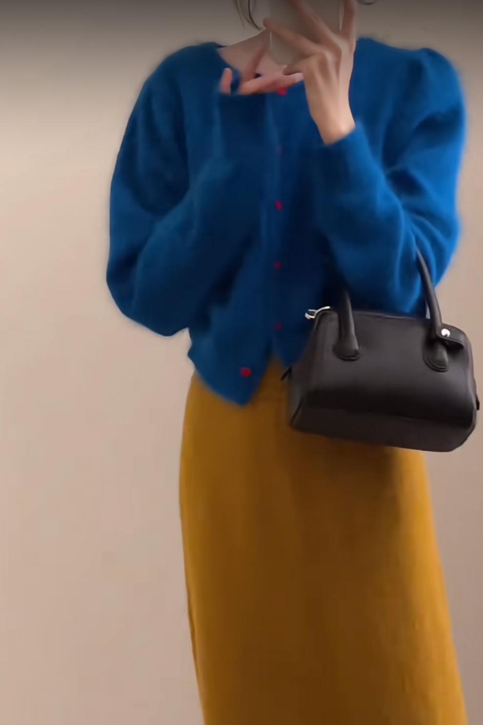 2024 새로운 빈티지 부드러운 세트 긴 소매 둥근 목 니트 카디건 여성용 가을과 겨울 높은 허리 스커트 투피스 세트스토어 가기