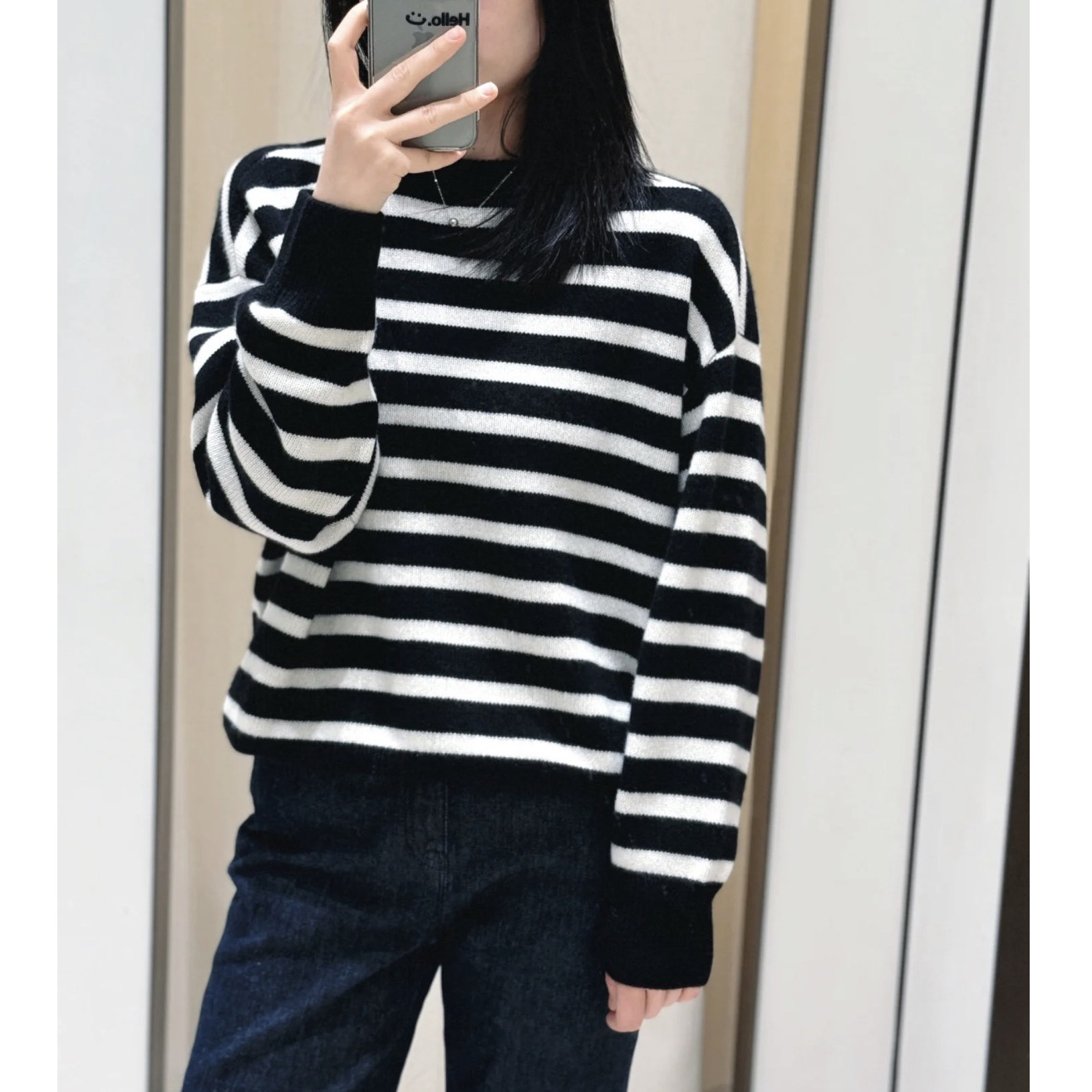 재고 Xiaohefeng 줄무늬 니트 스웨터 긴팔 가을 및 겨울 스웨터 기본 레이어 셔츠 여자의 겨울 내부 착용 탑스토어 가기
