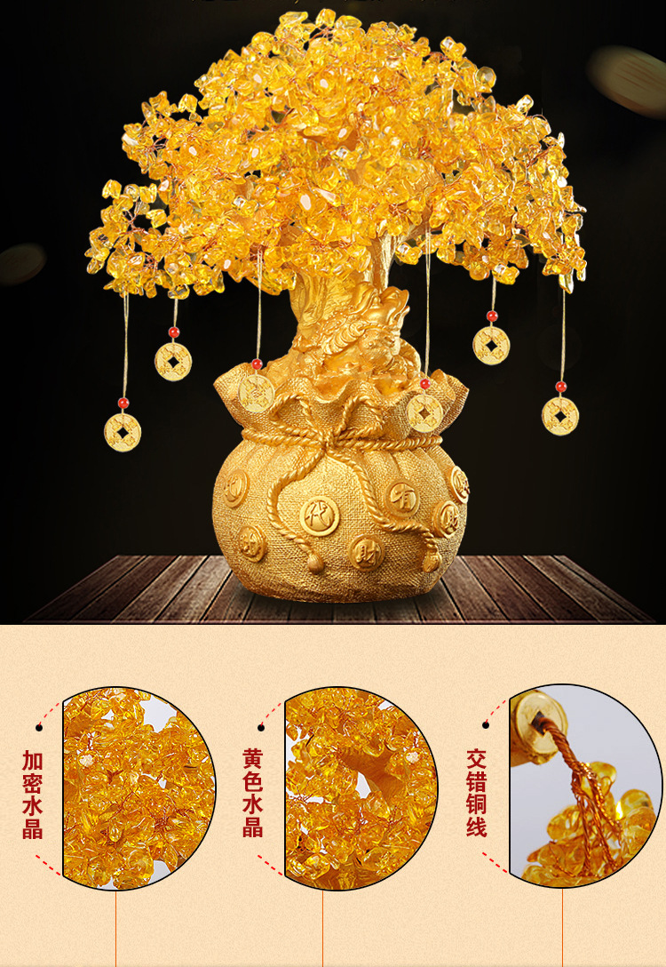 • 중간 황수정 돈주머니 나무 22cm 높이(6개의 매달린 돈 보내기)