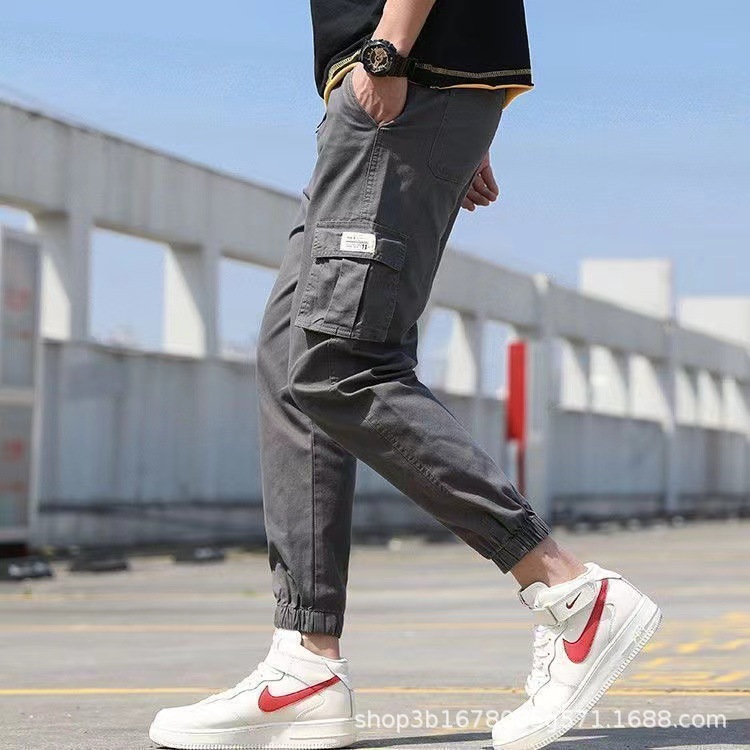 10 대 군주공 바지 남자 새 도착 다리 다리 하렌 바지 한국식 멀티 포켓 스포츠 루즈 캐주얼 패션 발목 길이 바지스토어 가기