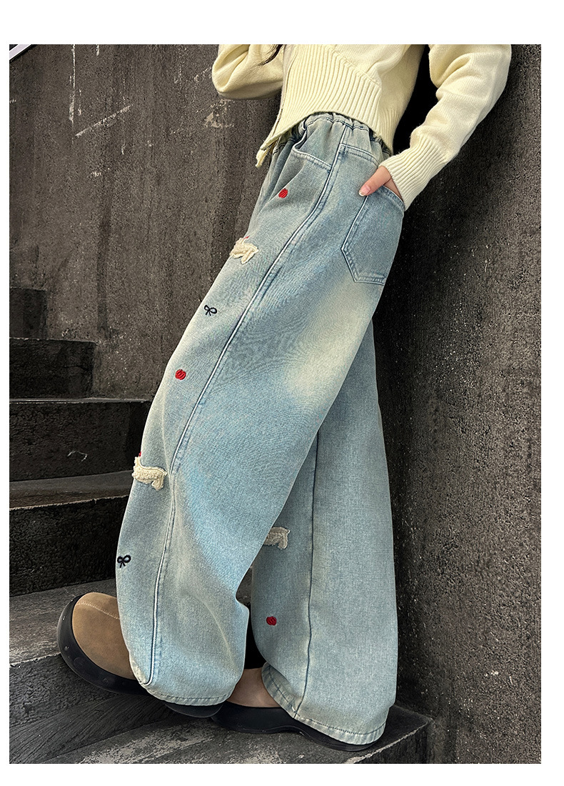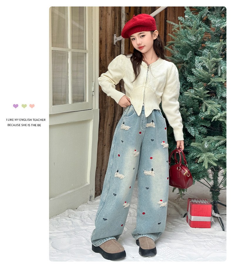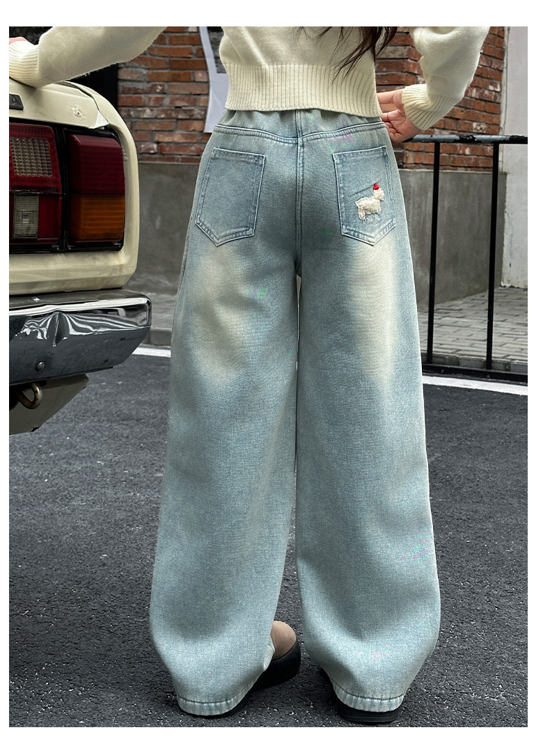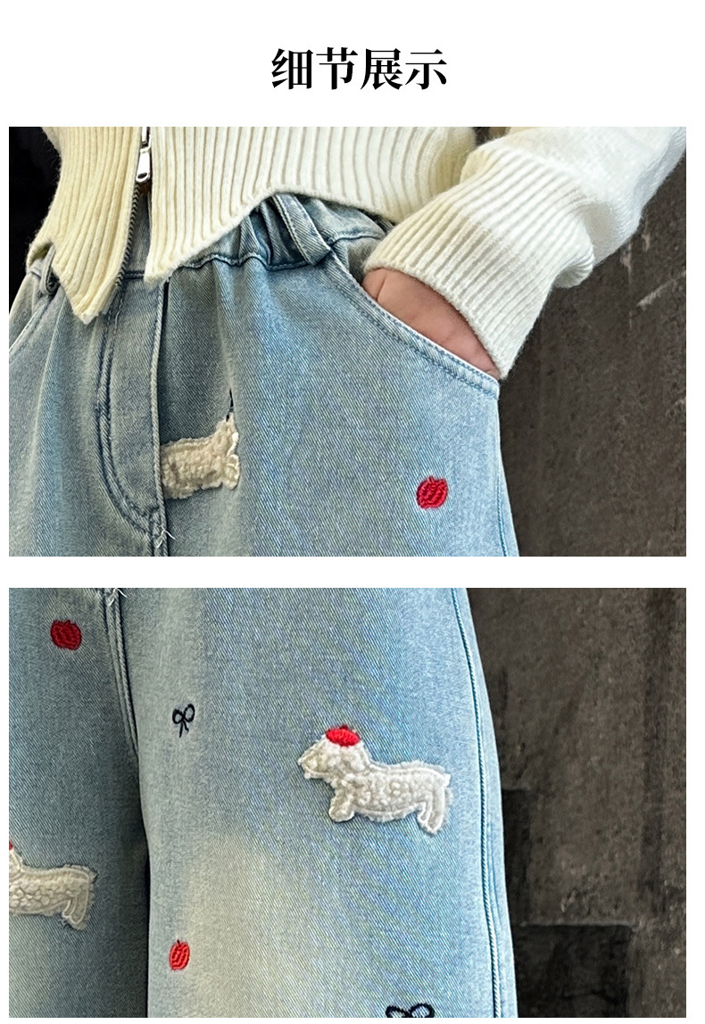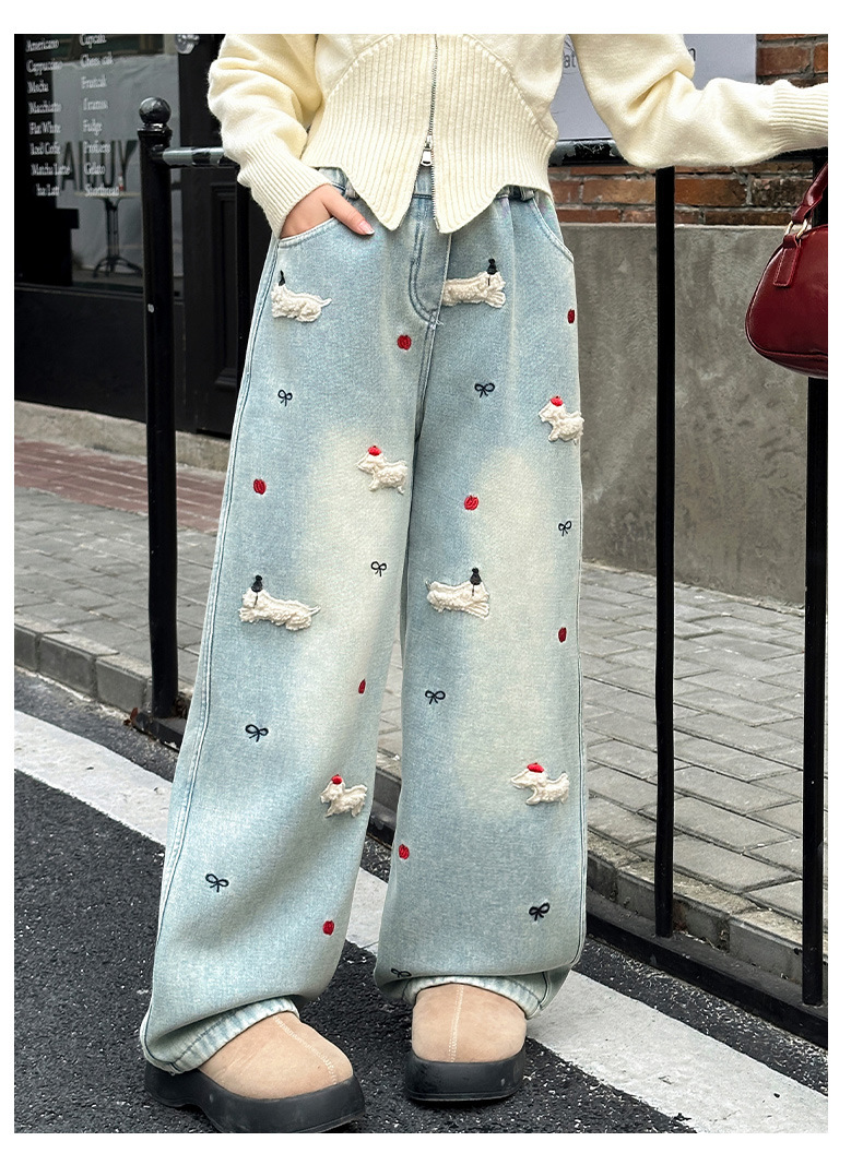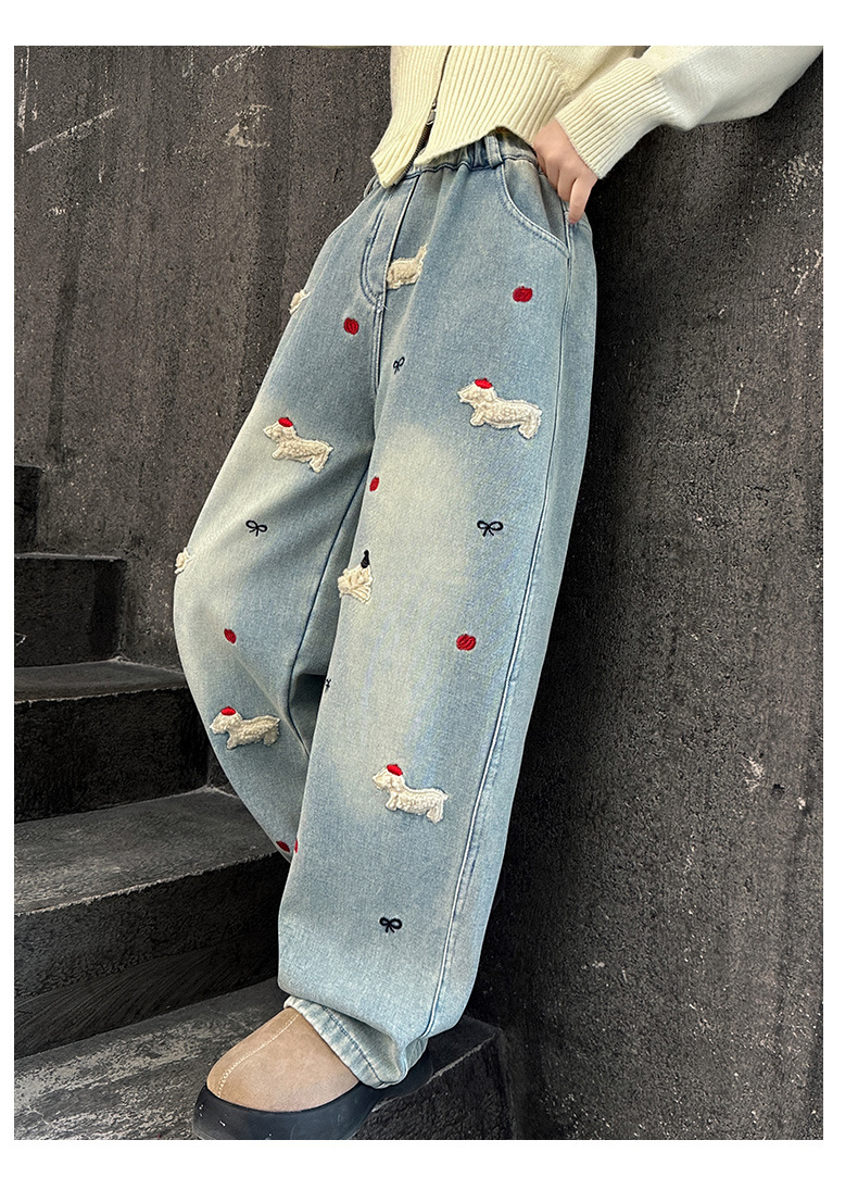 소녀 가을 겨울 청바지 기모 두꺼운 어린이 바지 2024 새로운 스타일 유행 겨울 직선 다리 넓은 다리 바지스토어 가기