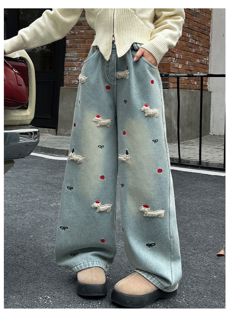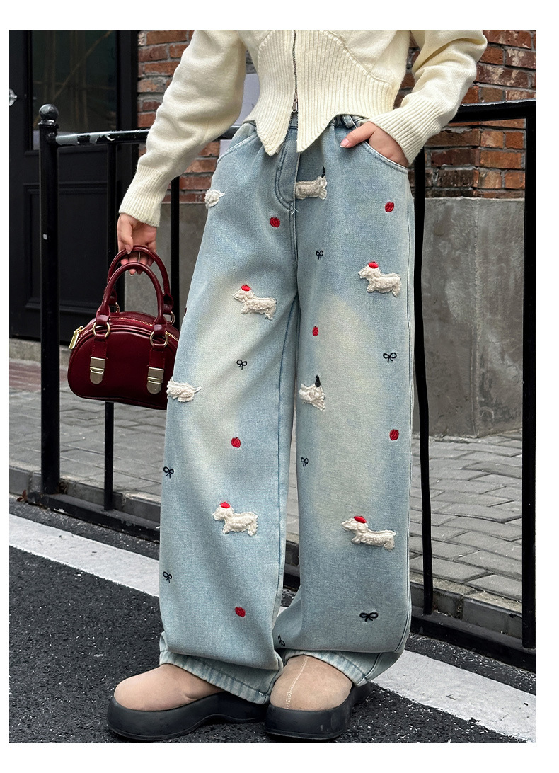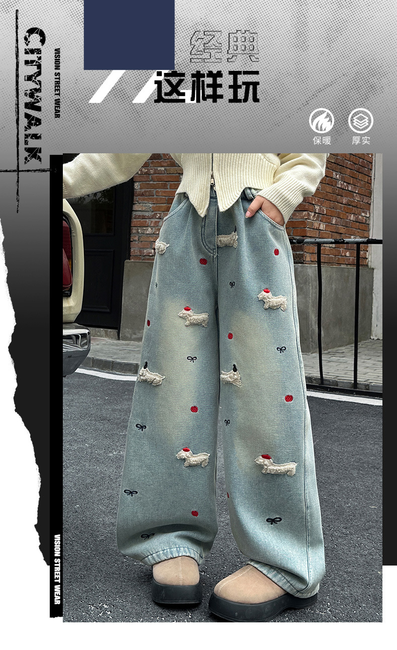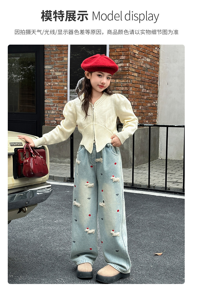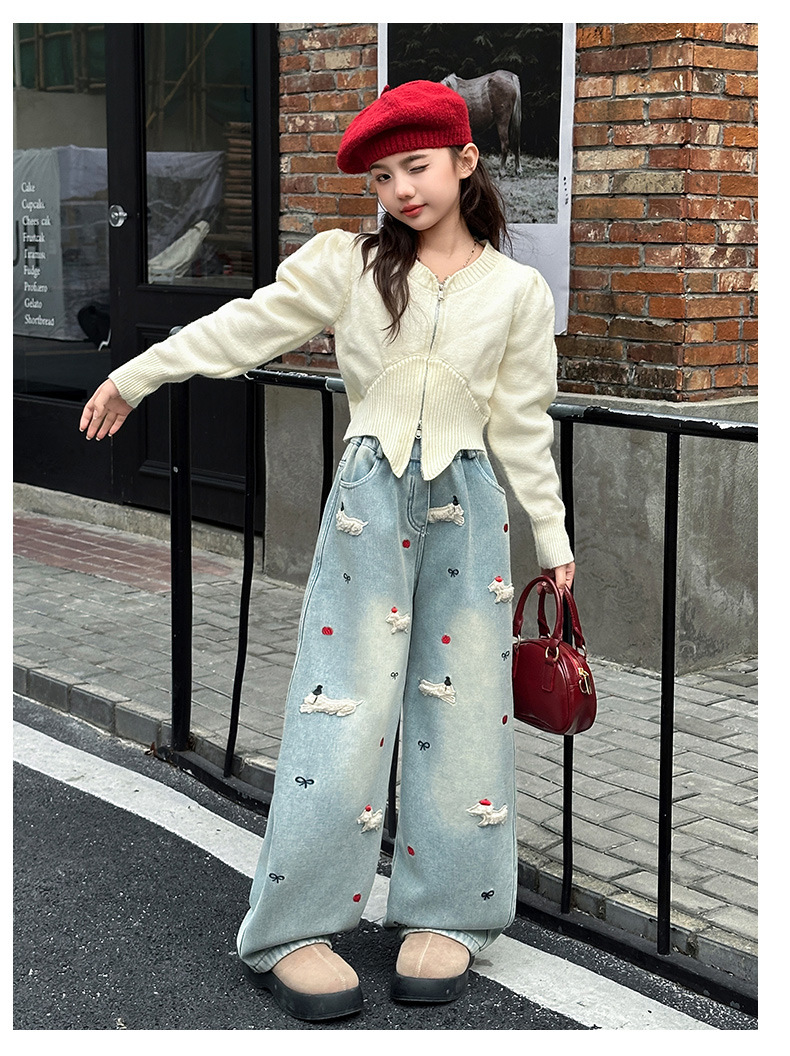소녀 가을 겨울 청바지 기모 두꺼운 어린이 바지 2024 새로운 스타일 유행 겨울 직선 다리 넓은 다리 바지스토어 가기