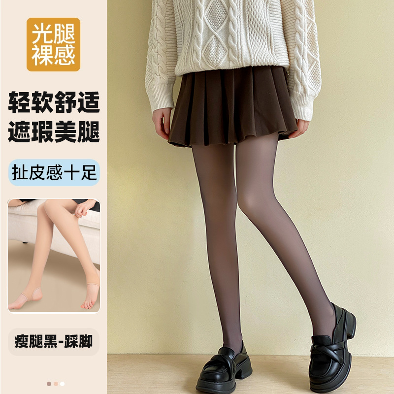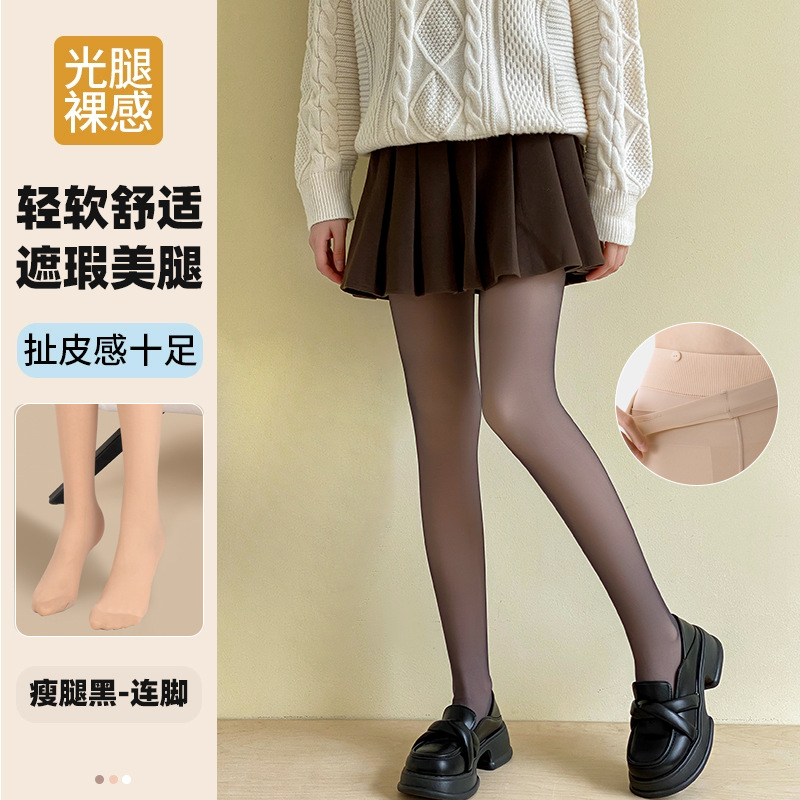 더블 레이어 버튼 라이트 레그 아티팩트 여성의 가을과 겨울 두꺼운 가짜 고기 스타킹 기모 알몸 느낌의 검은 피부-투명베이스 팬티 스타킹스토어 가기