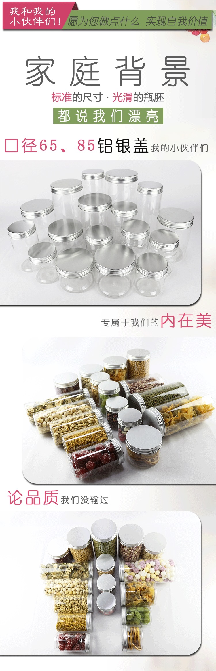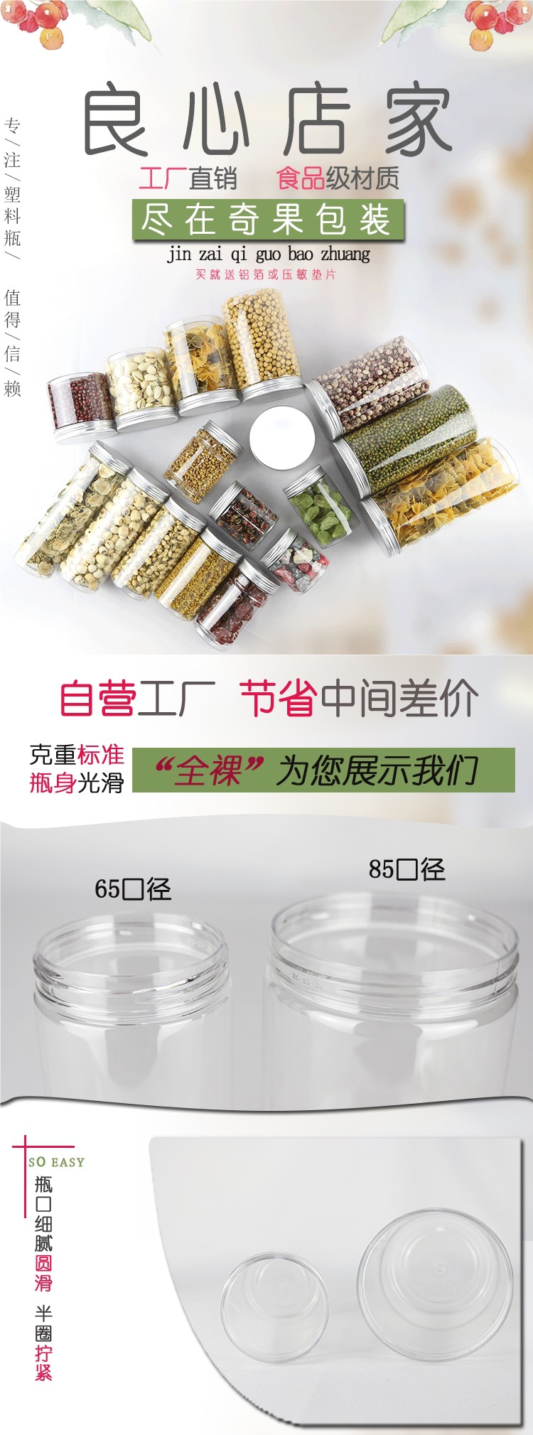 [50 팩-알루미늄 실버 캡] 플라스틱 병 가정용 투명 플라스틱 항아리 식품 항아리 꿀 병 2kg스토어 가기
