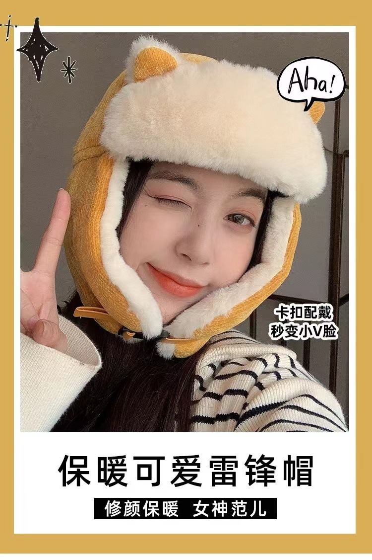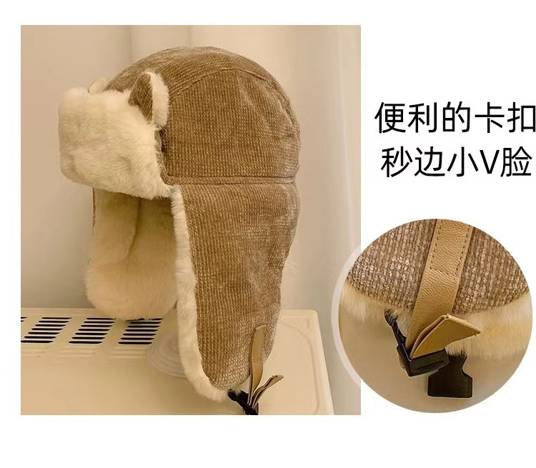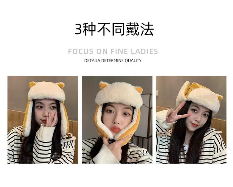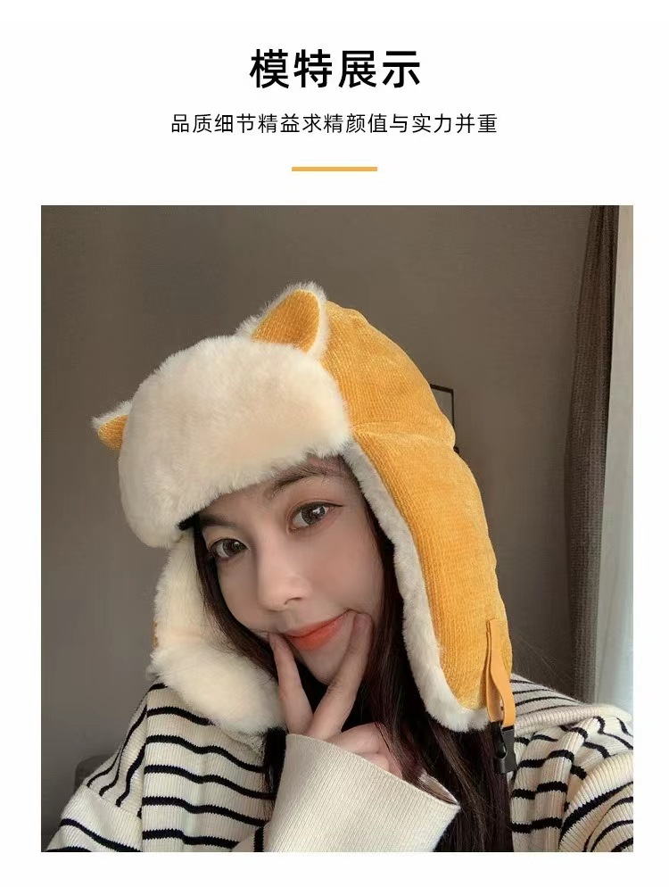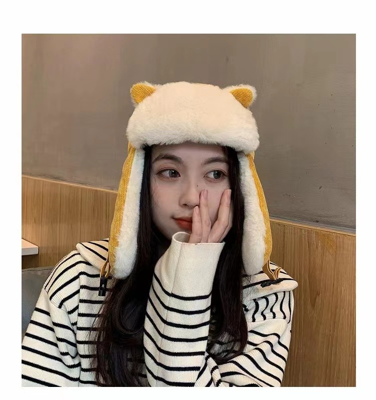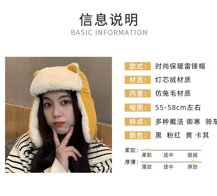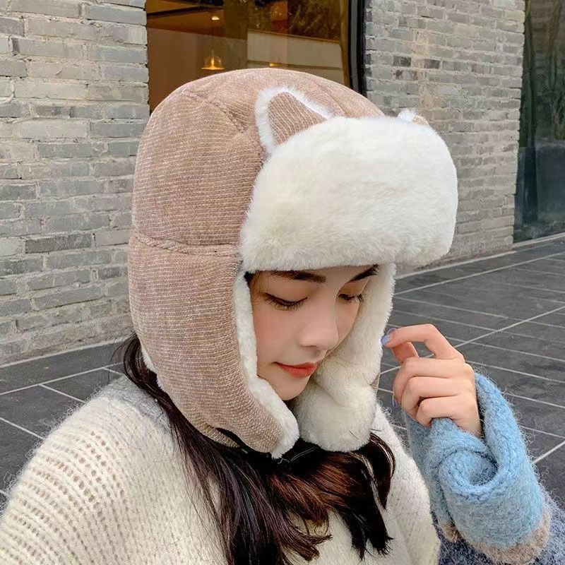 Lei Feng Hat 여성 고양이 귀 부모-어린이 한국 스타일 가을과 겨울 기모 따뜻한 귀여운 사이클링 방풍 모자 귀 보호 방탄 모자스토어 가기
