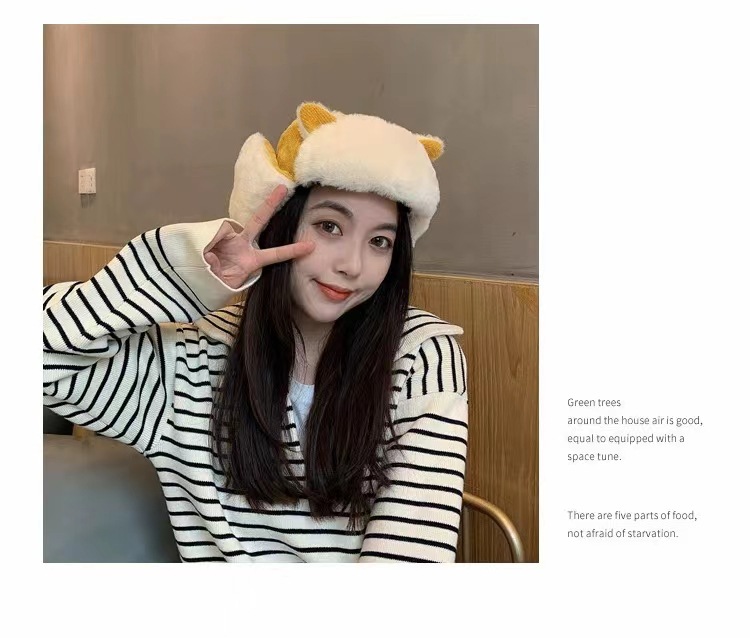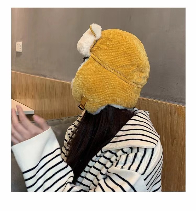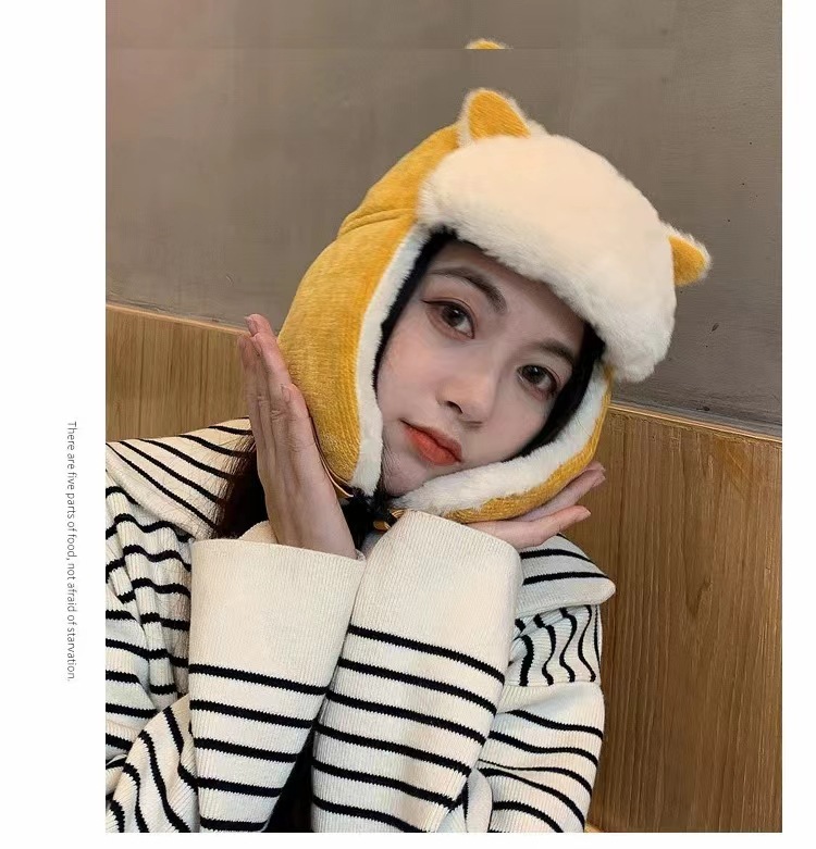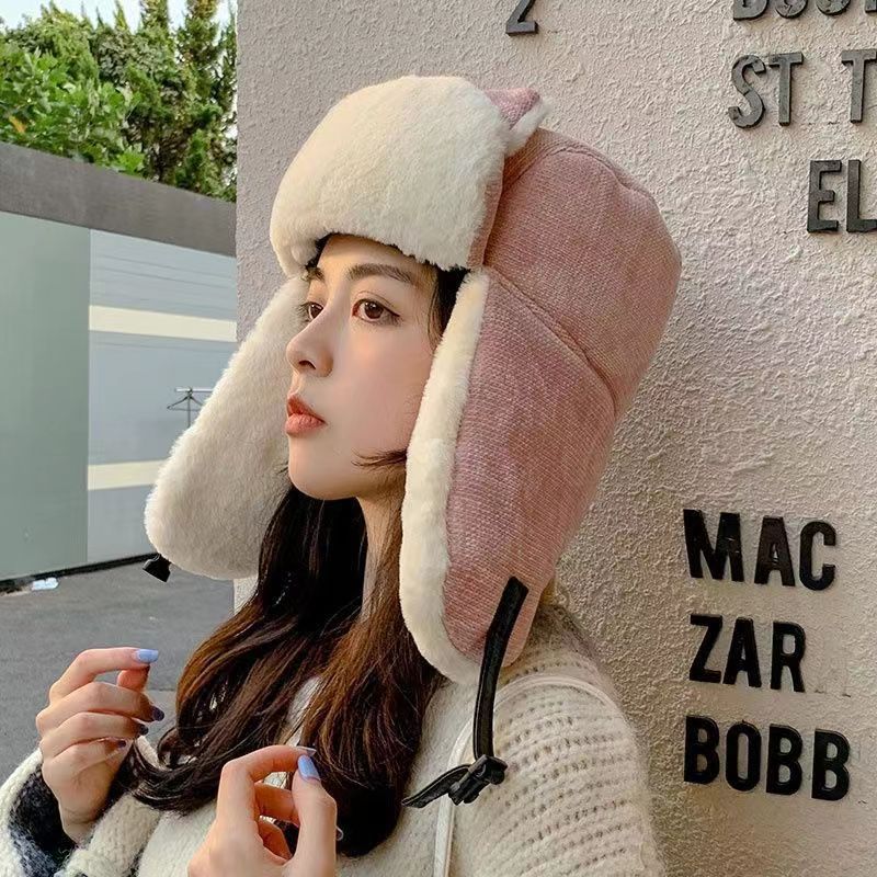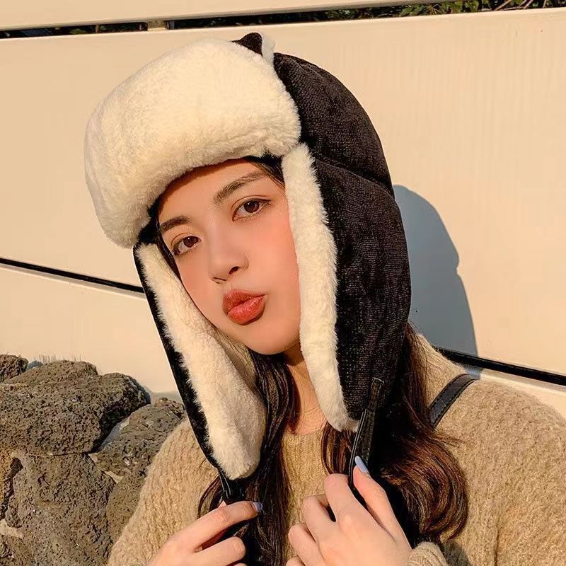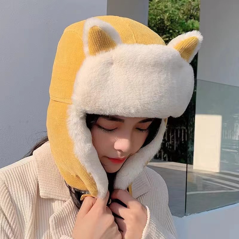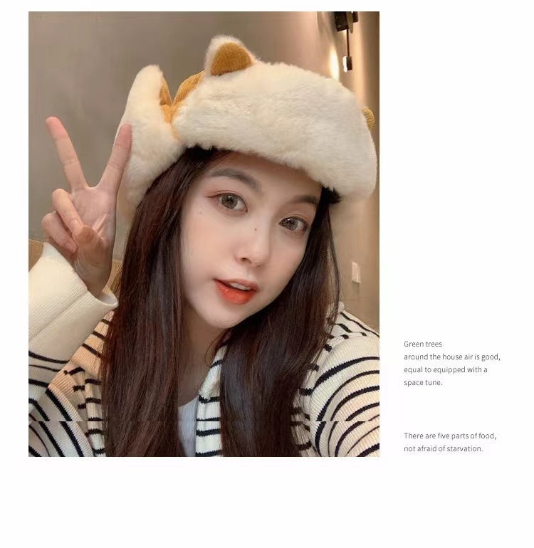 Lei Feng Hat 여성 고양이 귀 부모-어린이 한국 스타일 가을과 겨울 기모 따뜻한 귀여운 사이클링 방풍 모자 귀 보호 방탄 모자스토어 가기