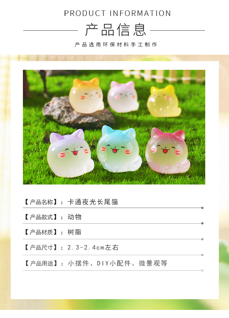귀여운 야광 고양이 미니어처 테이블 장식품 만화 DIY 긴 꼬리 고양이 자동차 장식 액세서리스토어 가기