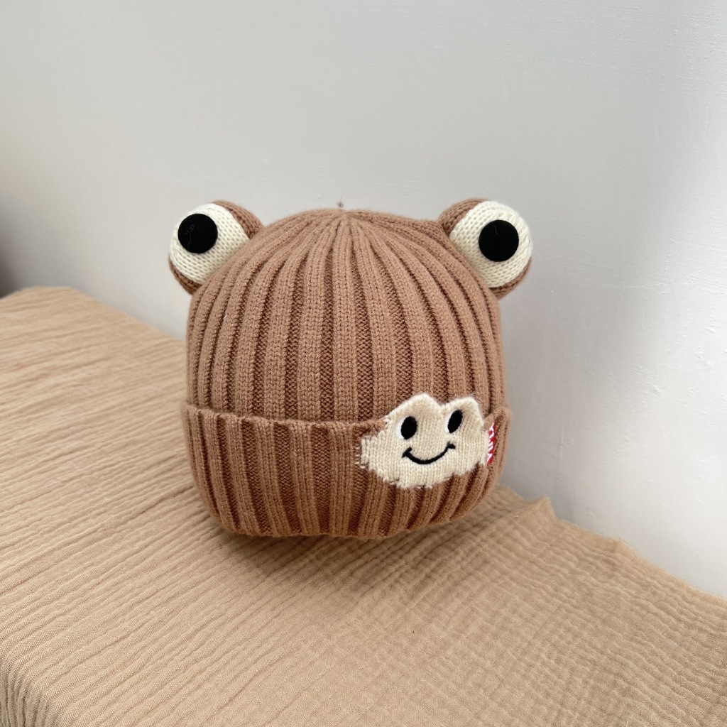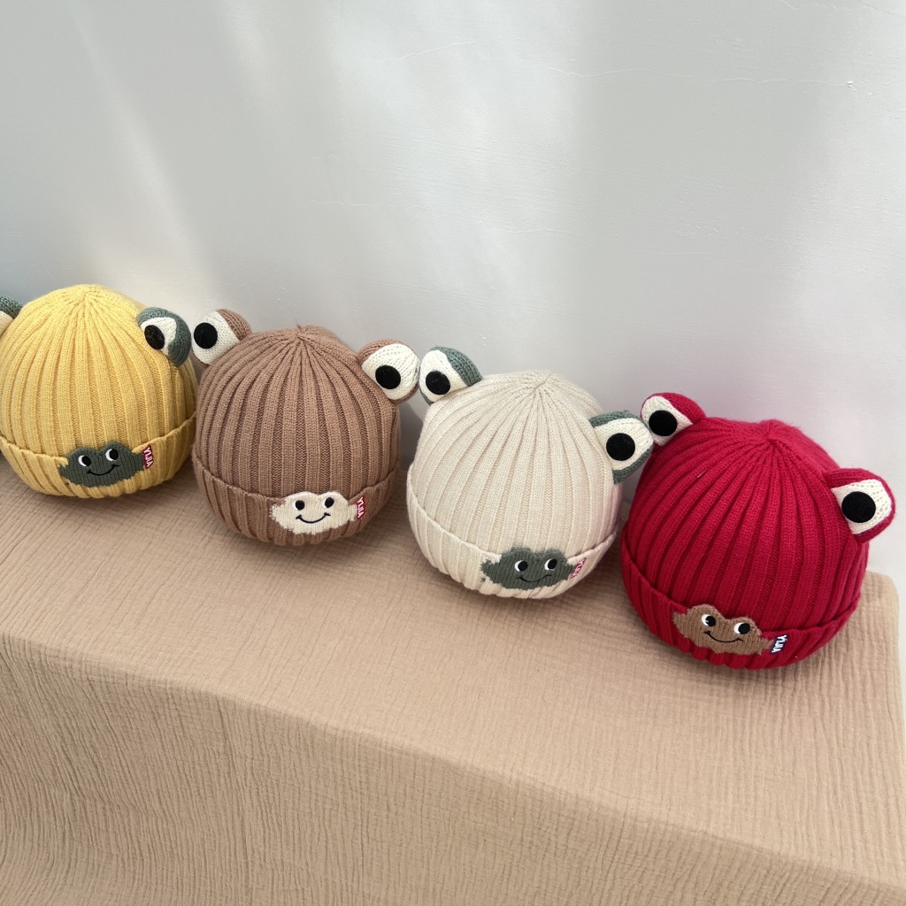 아기 모자 가을과 겨울 귀여운 개구리 아기 소년과 소녀 니트 울 모자 방풍 따뜻한 풀오버 모자 두껍게