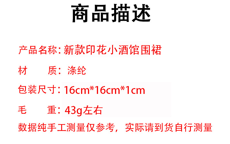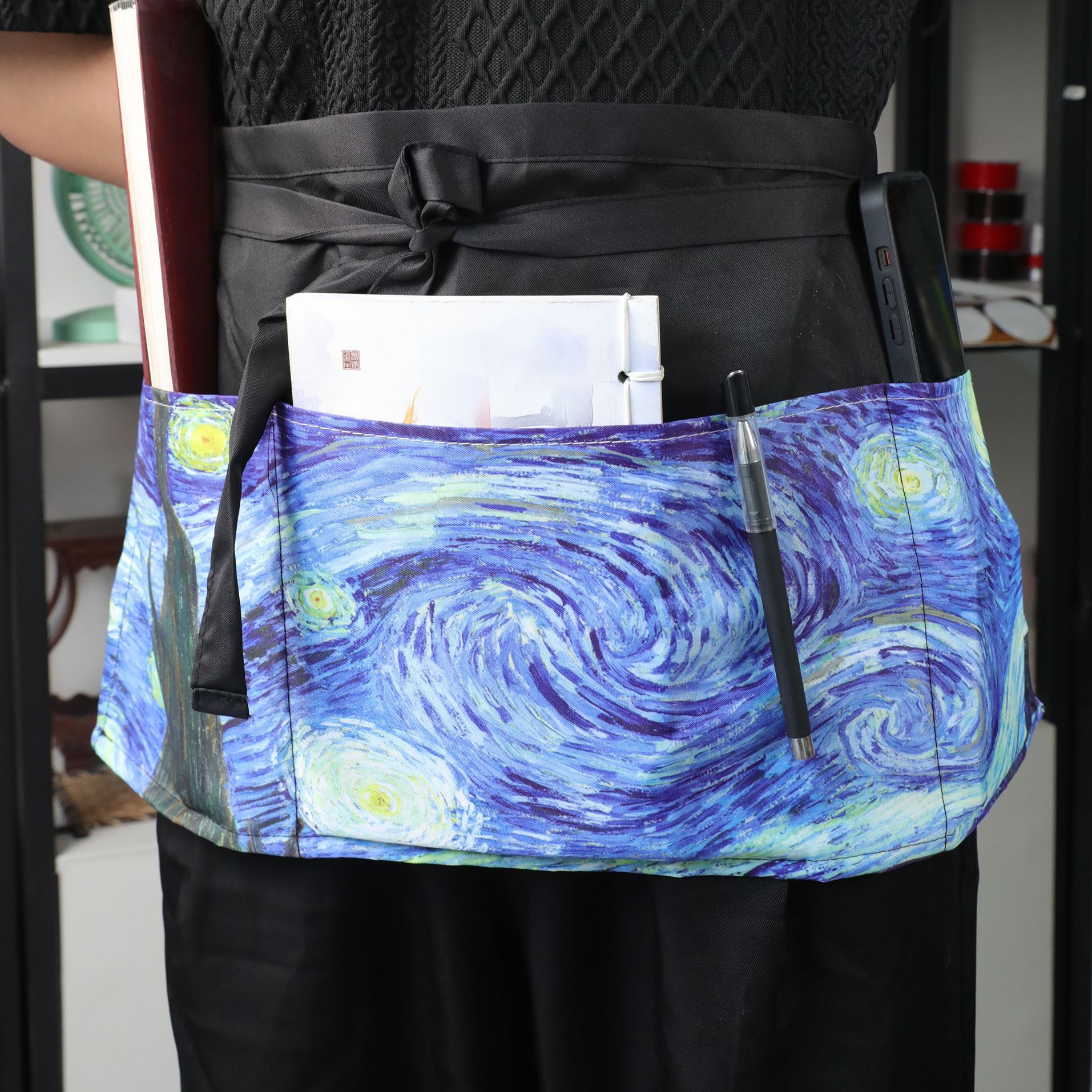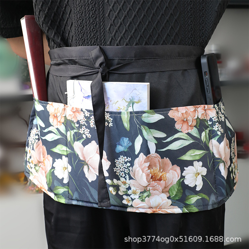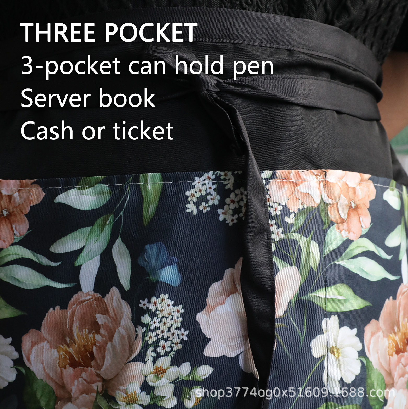 국경 간 뜨거운 판매 인쇄 반 허리 앞치마 폴리 에스터 방수 및 오염 방지 3 포켓 레스토랑 카페 앞치마 웨이터스토어 가기