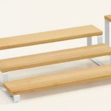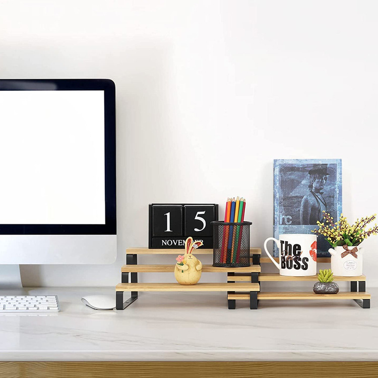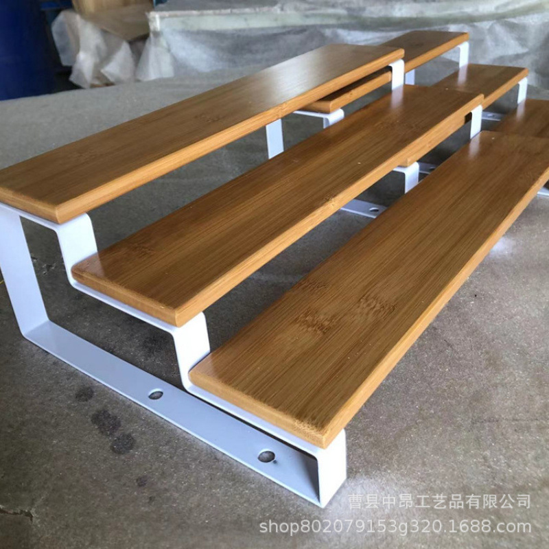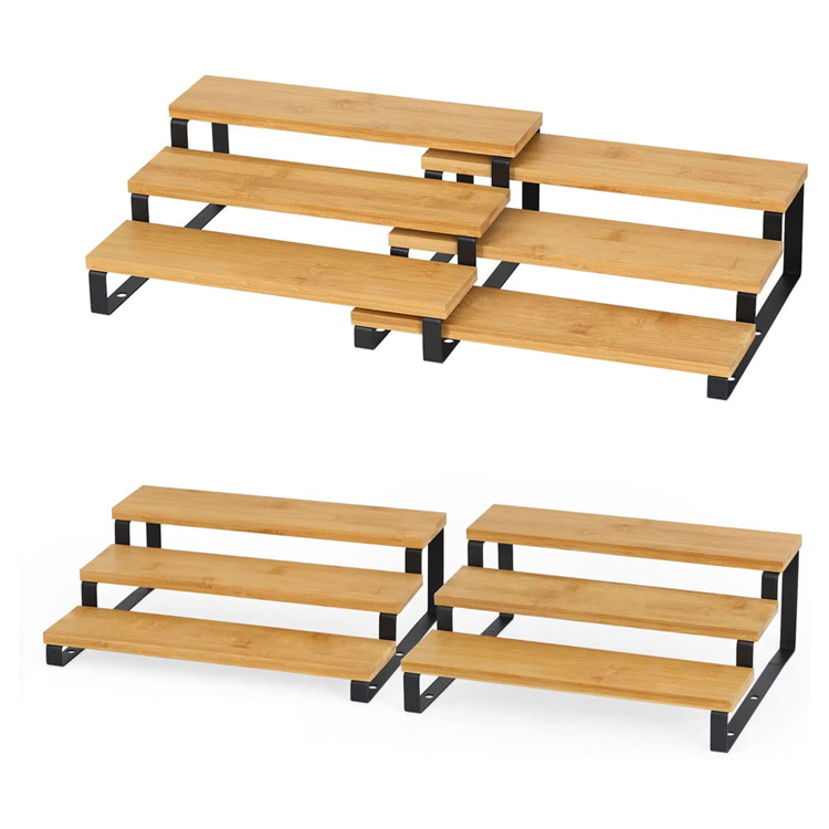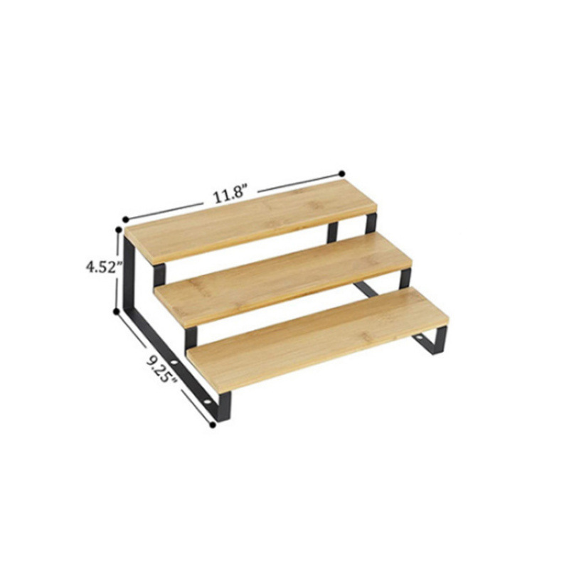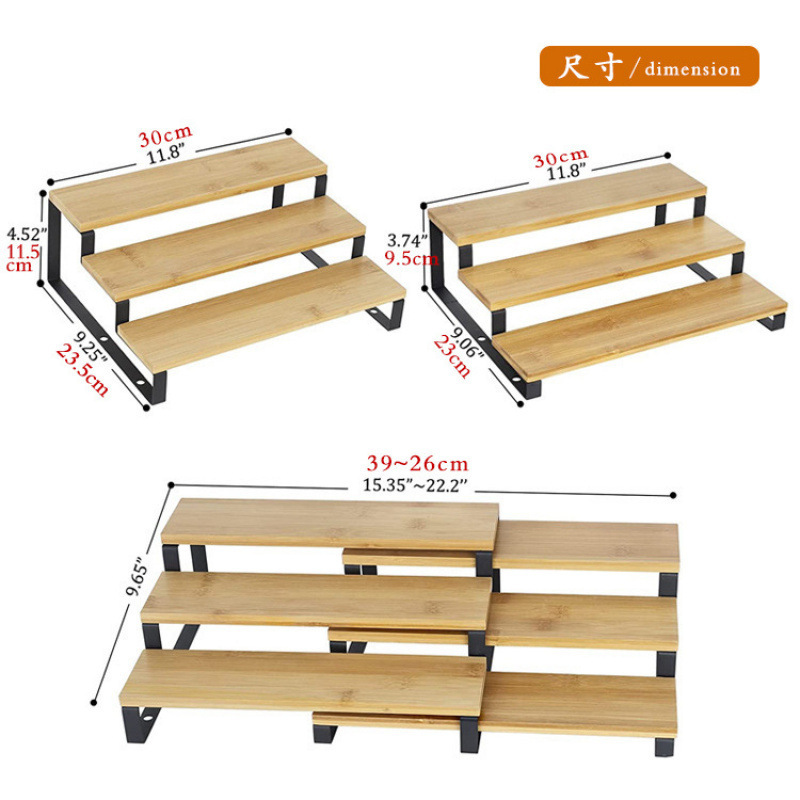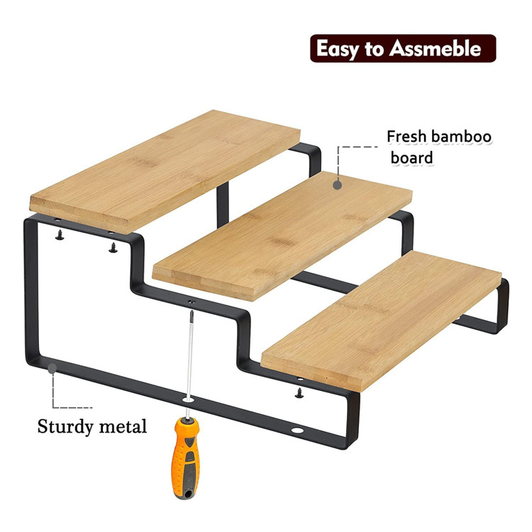 3 층 대나무 향신료 조미료 랙 확장 가능한 개폐식 주방 욕실 금속 목재 디스플레이 보관 랙 사다리 랙스토어 가기